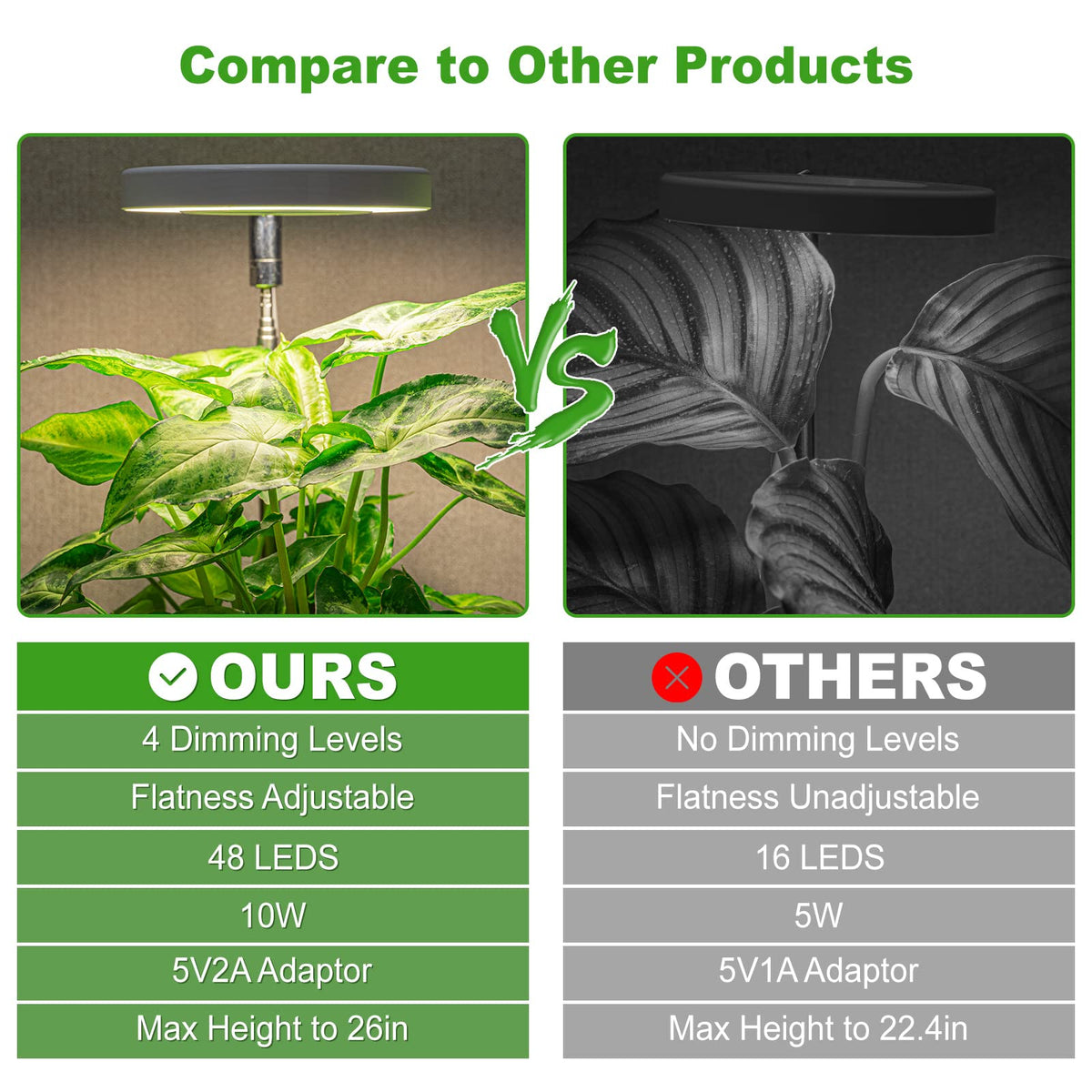 Q: What makes the LORDEM Grow Light different from other plant lights?A: The LORDEM Grow Light stands out due to its unique artistic halo design, warm natural light that enhances home decor, and advanced LED technology that ensures higher efficiency and longer lifespan (50,000 hours), making it both functional and aesthetically pleasing.