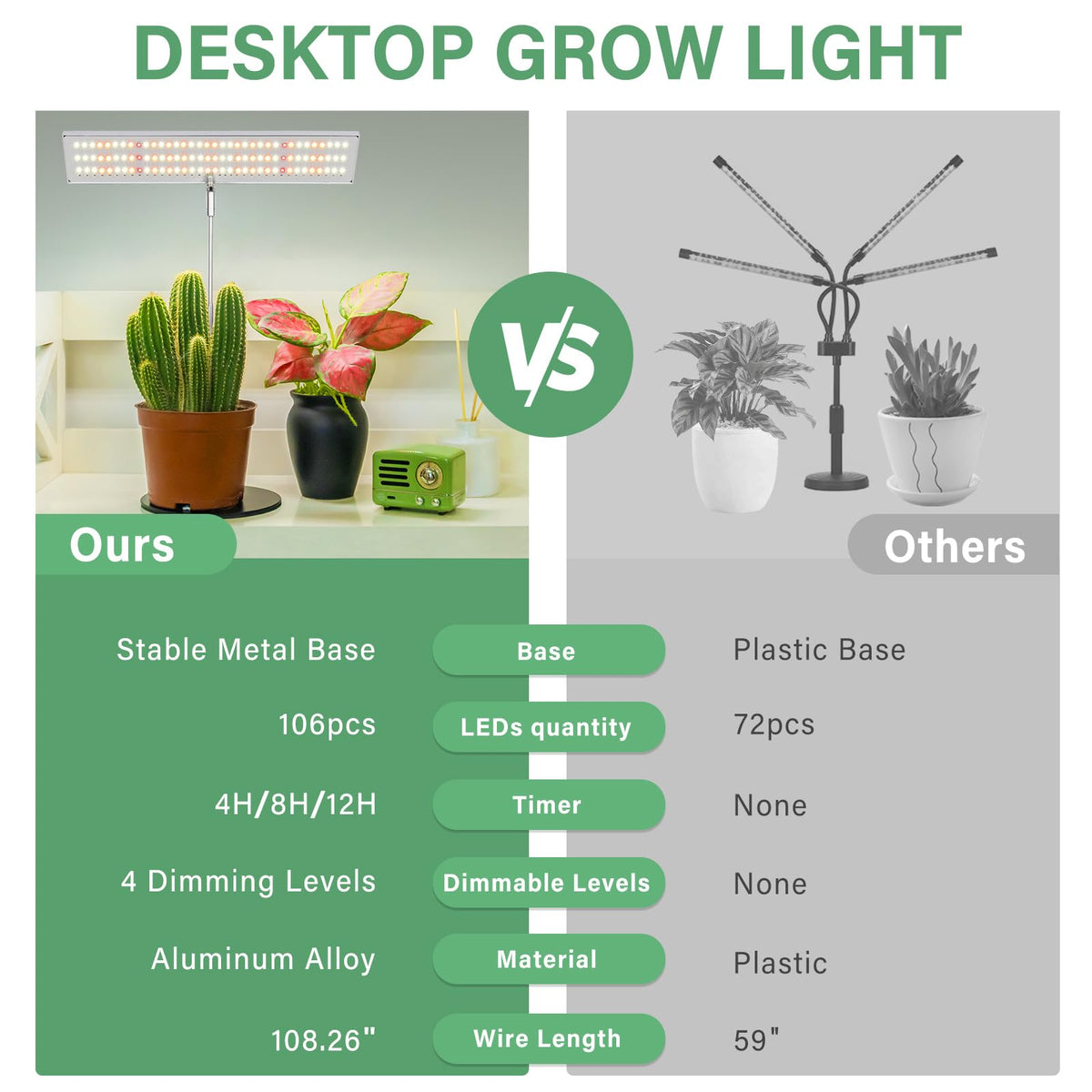 Lordem Grow Light, Full Spectrum Led Plant Light For Indoor Plants, Height Adjustable Growing Lamp With Auto On/Off Timer 4H/8H/12H, 4 Dimmable Brightness, Ideal For Home Desk Plant Lighting