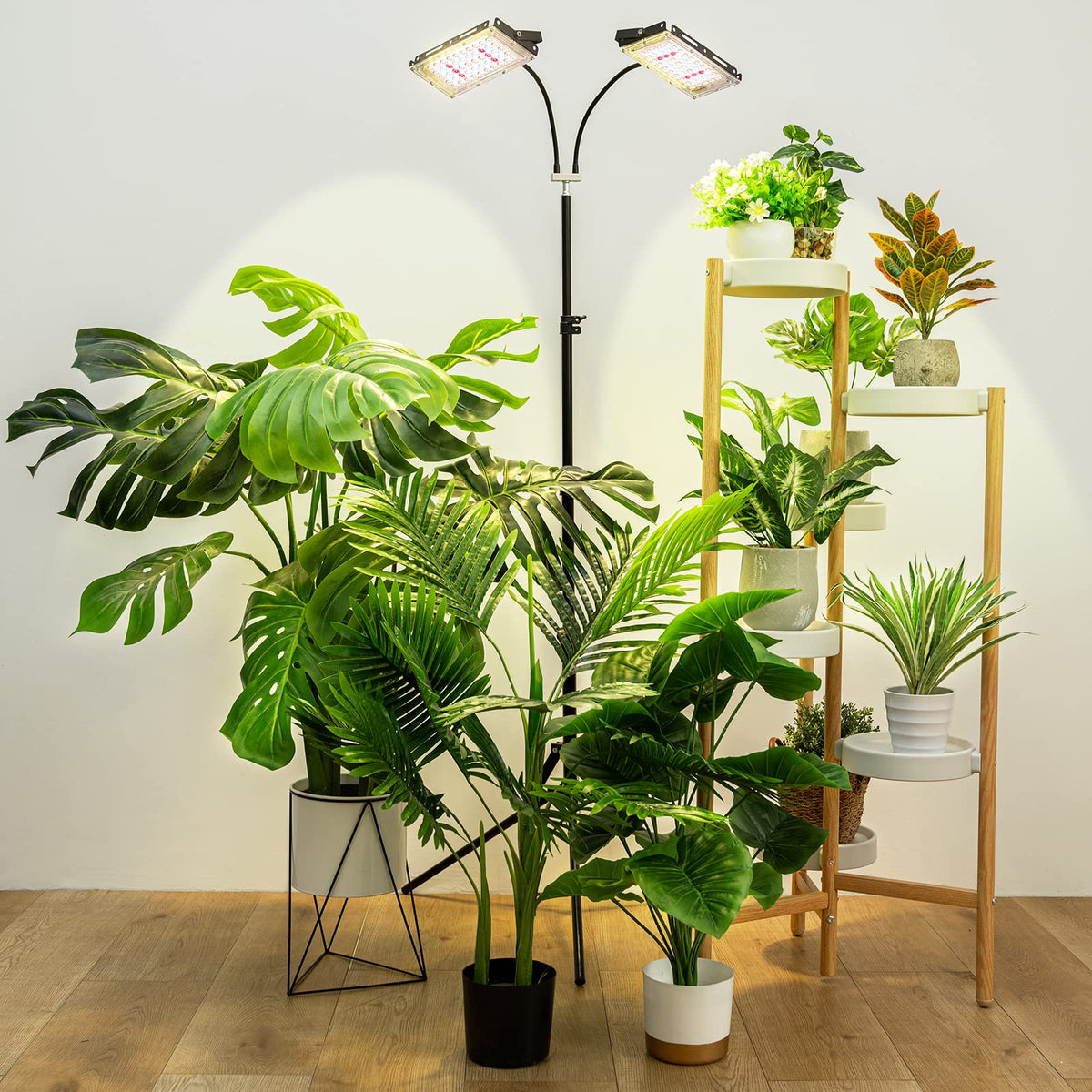 Lordem Grow Light With Stand, Full Spectrum Led Plant Light For Indoor Plants, 200W Dual Heads Grow Lamp With Auto On/Off Timer, 3 Lighting Modes, 6 Dimmable Levels, Adjustable Tripod 15-63 Inches