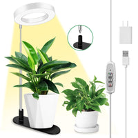 Lordem Plant Grow Light, Full Spectrum Halo Desk Light, Height Adjustable 7.8"-26", Led Growing Lamp, Automatic Timer 4H/8H/12H, 4 Level Dimmable, Ideal For Indoor Plants, White, 1 Pack