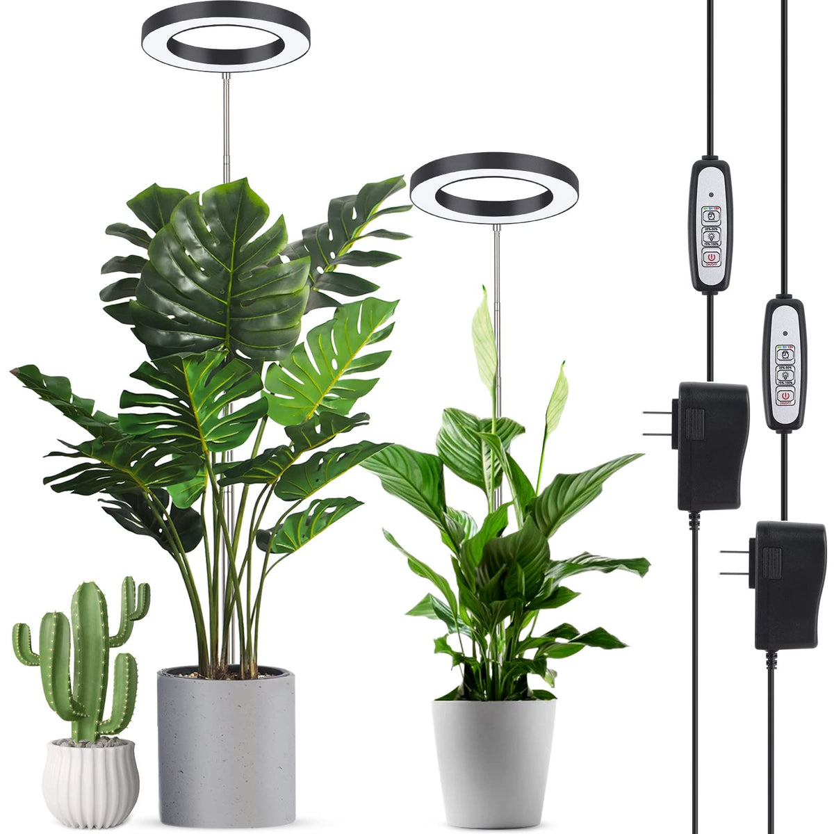 Lordem Plant Grow Light, Full Spectrum Plant Light For Indoor Plants, Brightness Adjustable Led Growing Lamp With Auto On/Off Timer 4H/8H/12H, Height Adjustable, 2 Packs Of Black