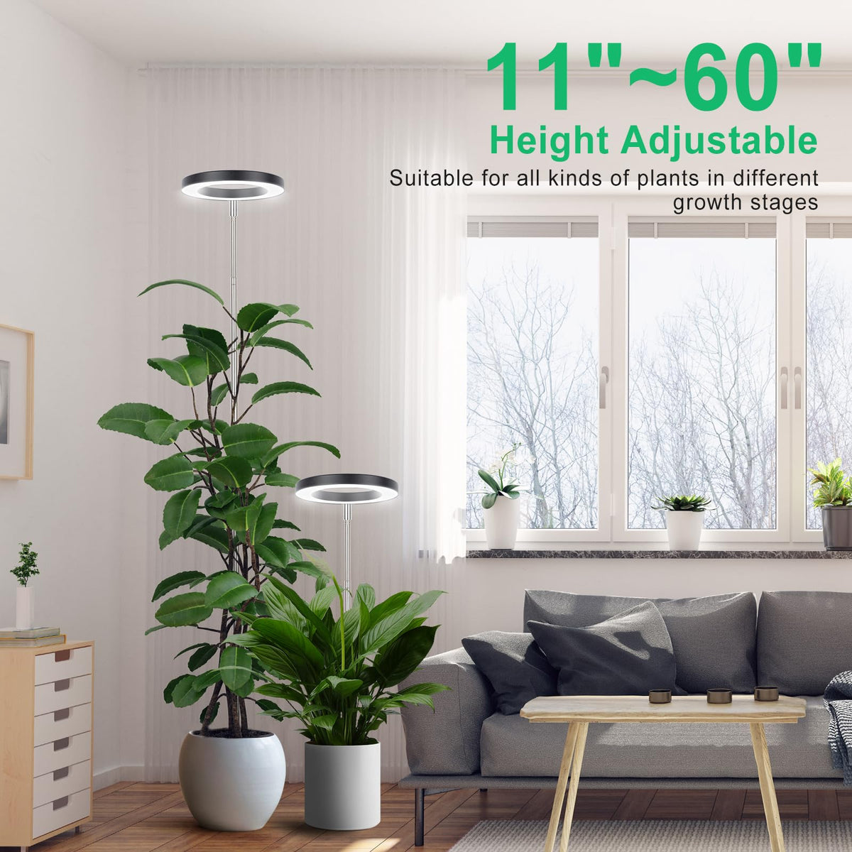 Q: What is the height adjustment range for the grow light?A: The height of the LORDEM Plant Grow Light is adjustable from 11 inches to 60 inches, allowing you to customize the light distance based on your plants' requirements and optimize light absorption.
