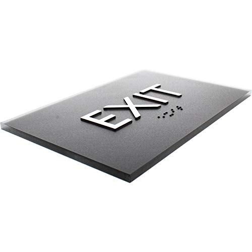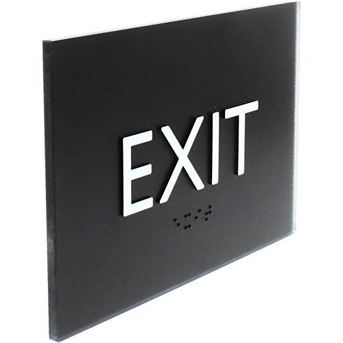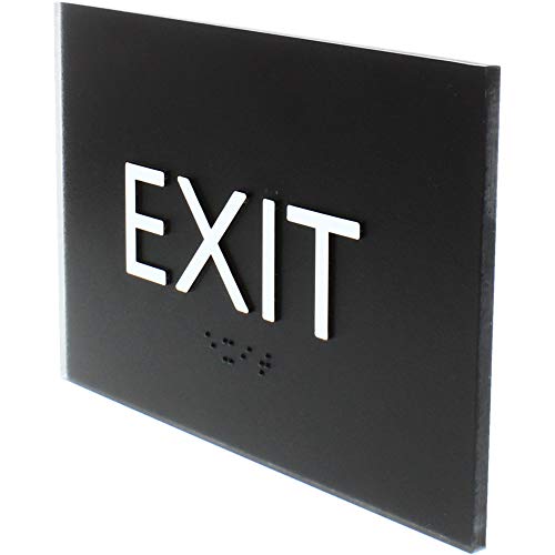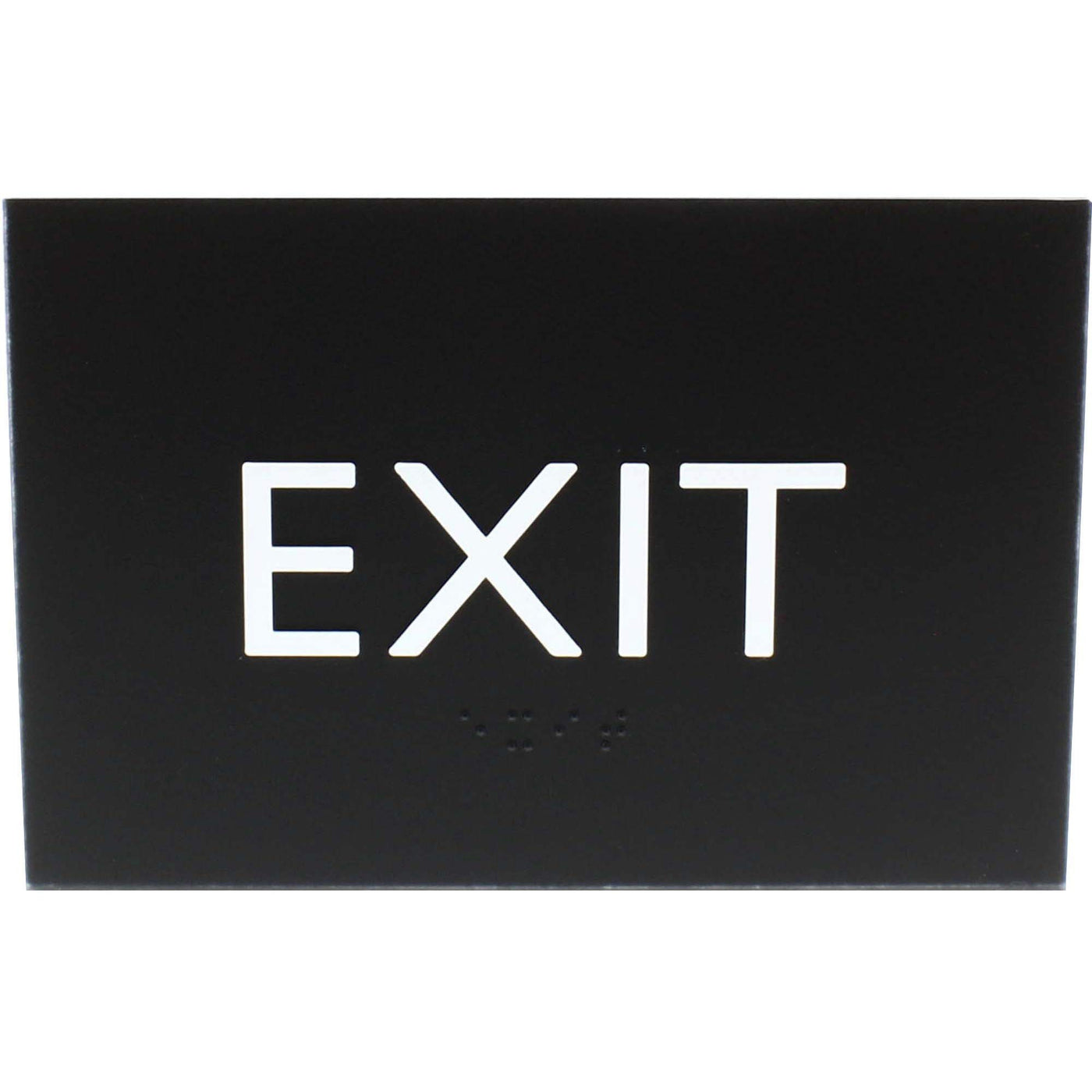 Exit sign features a durable plastic frame to provide a sturdy display that will hold up for years. Bold, capital letters that display the word exit are colored white and raised slightly on a black background for a professional look. ADA-compliant sign also includes braille that is directly below the text to ensure everyone can read the message. Included foam tape secures instantly to surfaces for quick display in a visible location.