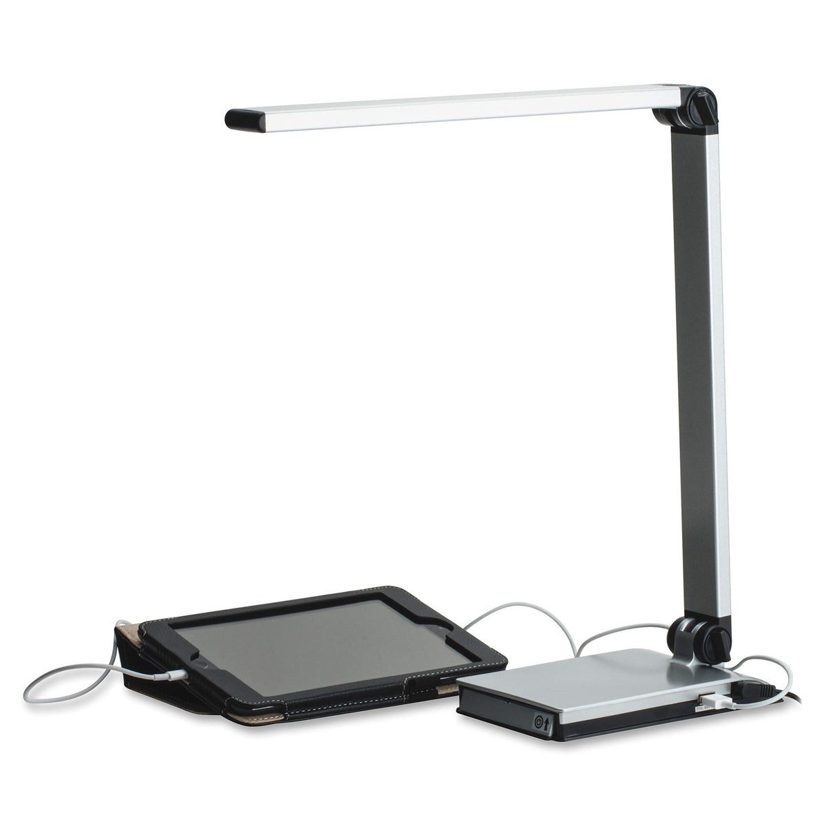 Feature-packed lighting with 3 levels of brightness Store your smartphone in the front USB port in the base for convenient recharging 8-watt SMD LED for plenty of light Manufacturer Lorell Manufacturer Part Number 13201 Brand Name Lorell Product Name Smart Device Slot/USB Task Light Marketing Information Versatile task light focuses the right amount of light just where you need it and offers a smart device slot and USB charging port (at rear of lamp base) to keep up with your fast-paced schedule. Shade bends up to 180 degrees. The lower hinge can bend forward. Light is generated by 8-watt SMD LED module that is irreplaceable. Dimming switch offers three levels of light as well as an on/off function. LED Task Light is made of aluminum and plastic. It includes a DC adapter and a power cord almost 6' long. Lamp is for indoor use only. Packaged Quantity 1 Each Product Type Desk Lamp Bulb/Tube Type LED Maximum Bulb/Tube Power 8 W Mount Type Desk Mountable Application/Usage Desk Table Indoor Switch Type Dimmer Features USB Charging Dimmable Cord Length 6 ft Power Consumption 8 W Product Color Silver Product Material Aluminum Plastic Package Contents Smart Device Slot/USB Task Light 1 x DC adapter 1 x Power cord Certifications & Standards UL Listed Certification Recycled No Assembly Required No Country of Origin China Limited Warranty 5 Year