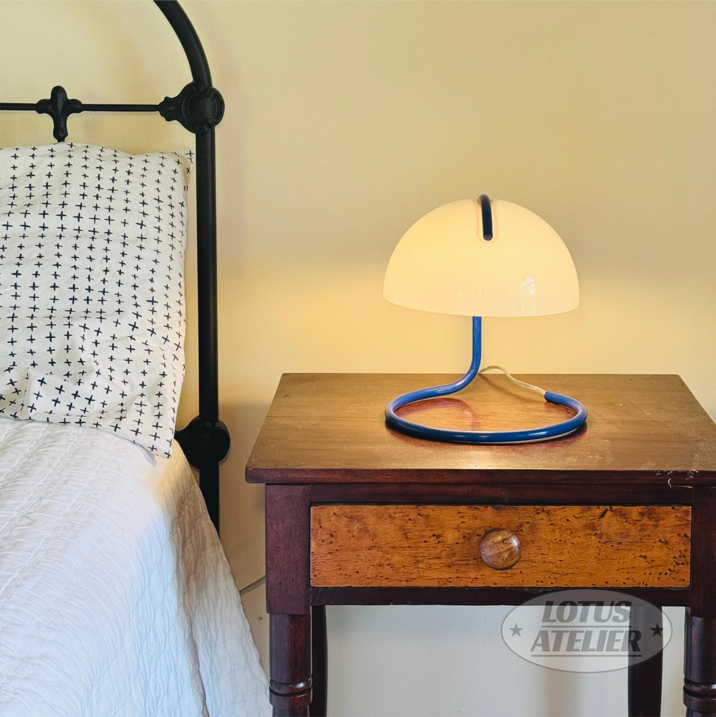 Lotus Atelier Blue Bauhaus Light | Retro Mushroom Table Lamp For Room Aesthetic Modern Lighting For Bedroom | Mid Century Modern | Living Room Decor & Bedroom Decor (10.5 H X 9.5 W) (Blue)
