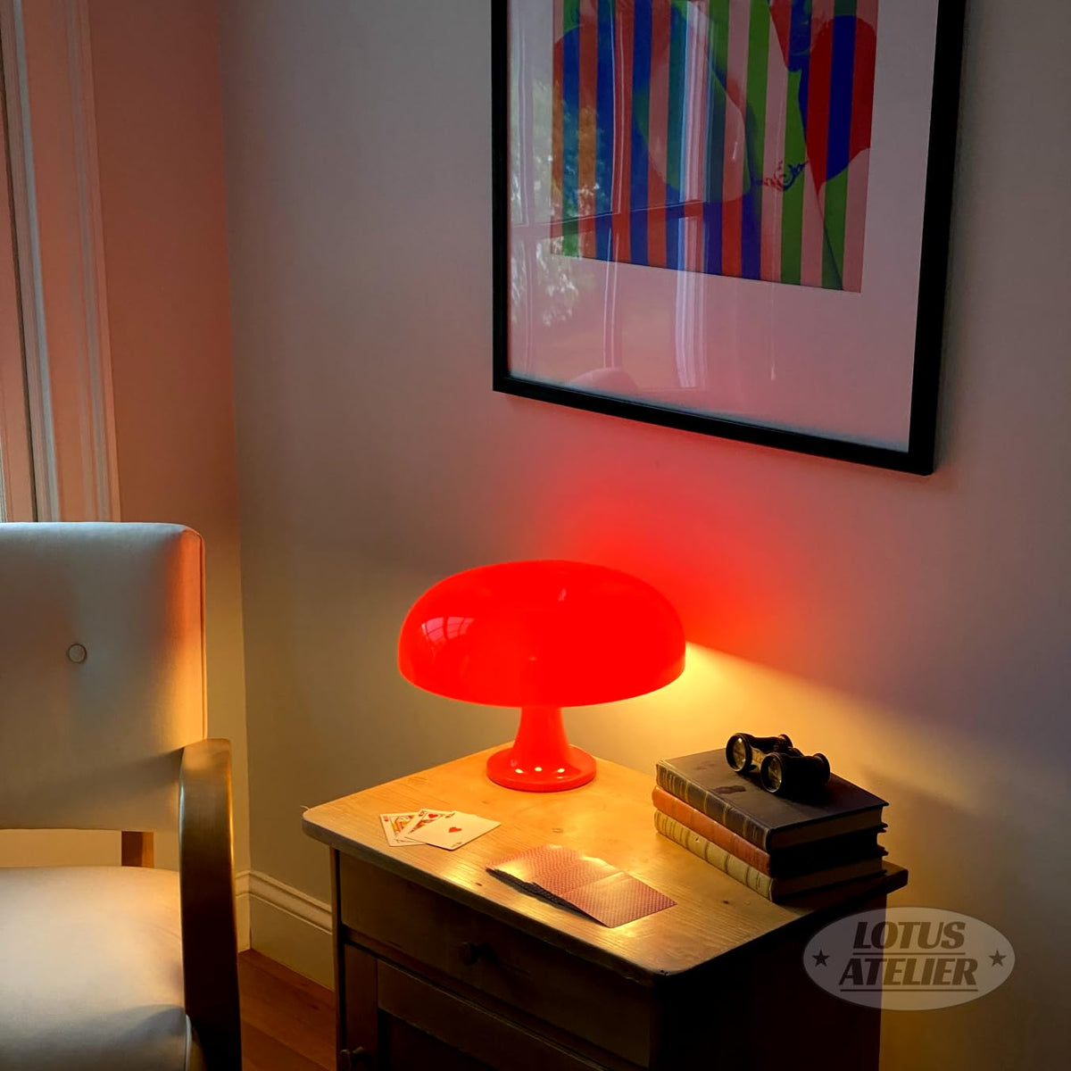 Lotus Atelier Red Mushroom Lamp For Room Aesthetic Modern Lighting For Bedroom Mid Century Lamp | Cool Retro Living Room Decor | Table Lamp Mushroom Light Home Decor Mcm (Red)