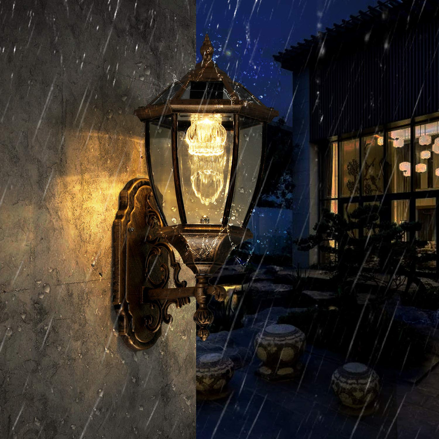 Q: Is the Lovefindahome Solar Wall Lamp waterproof?A: Yes, this solar wall lamp is IP44 rated, making it waterproof and suitable for outdoor use. It is designed to withstand various weather conditions, ensuring durability and longevity.