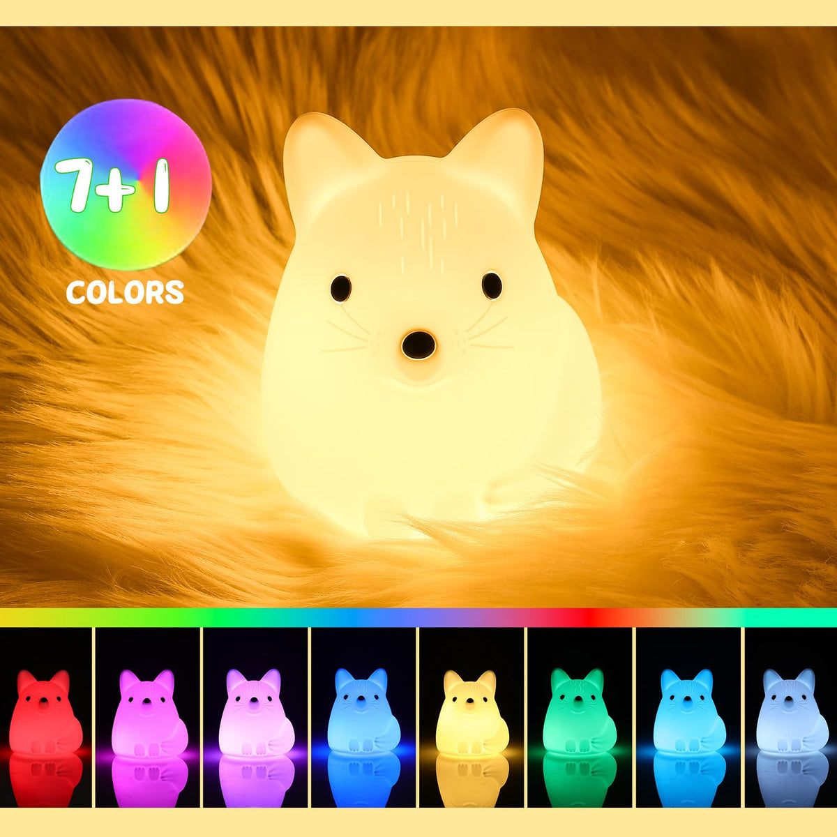 LOVERUIS Night Light for Children, Fox Night Lights 7 Colours Night Light Baby, USB Rechargeable, Cute Lamp Gifts for Babies, Ch