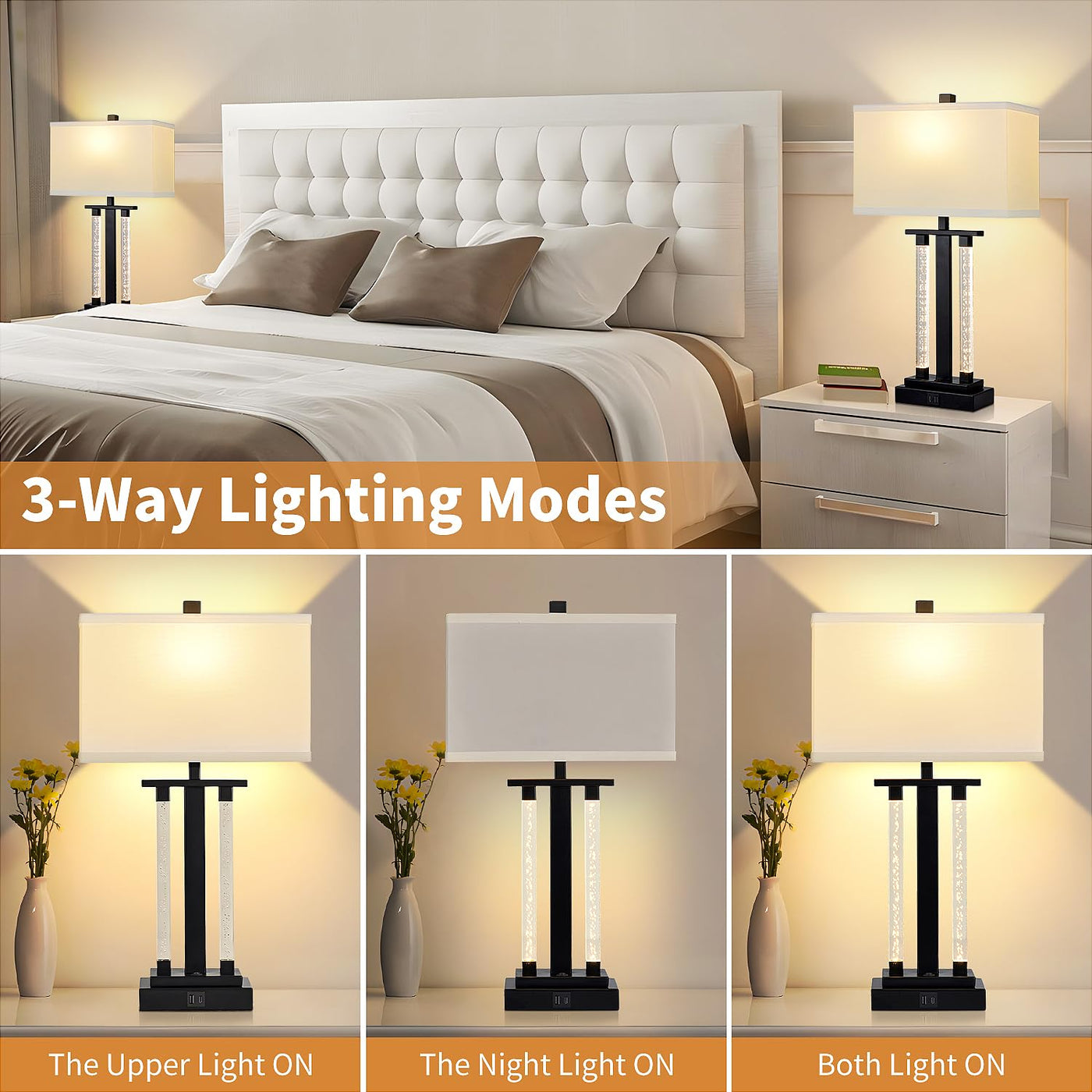 Lovlast Modern Table Lamps Set Of 2, 3-Way Lighting Modes Bedside Lamp For Bedroom Nightstand With Usb Charging Port & Type C, 2