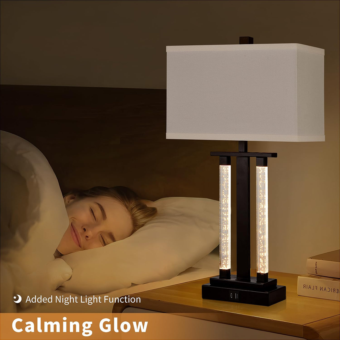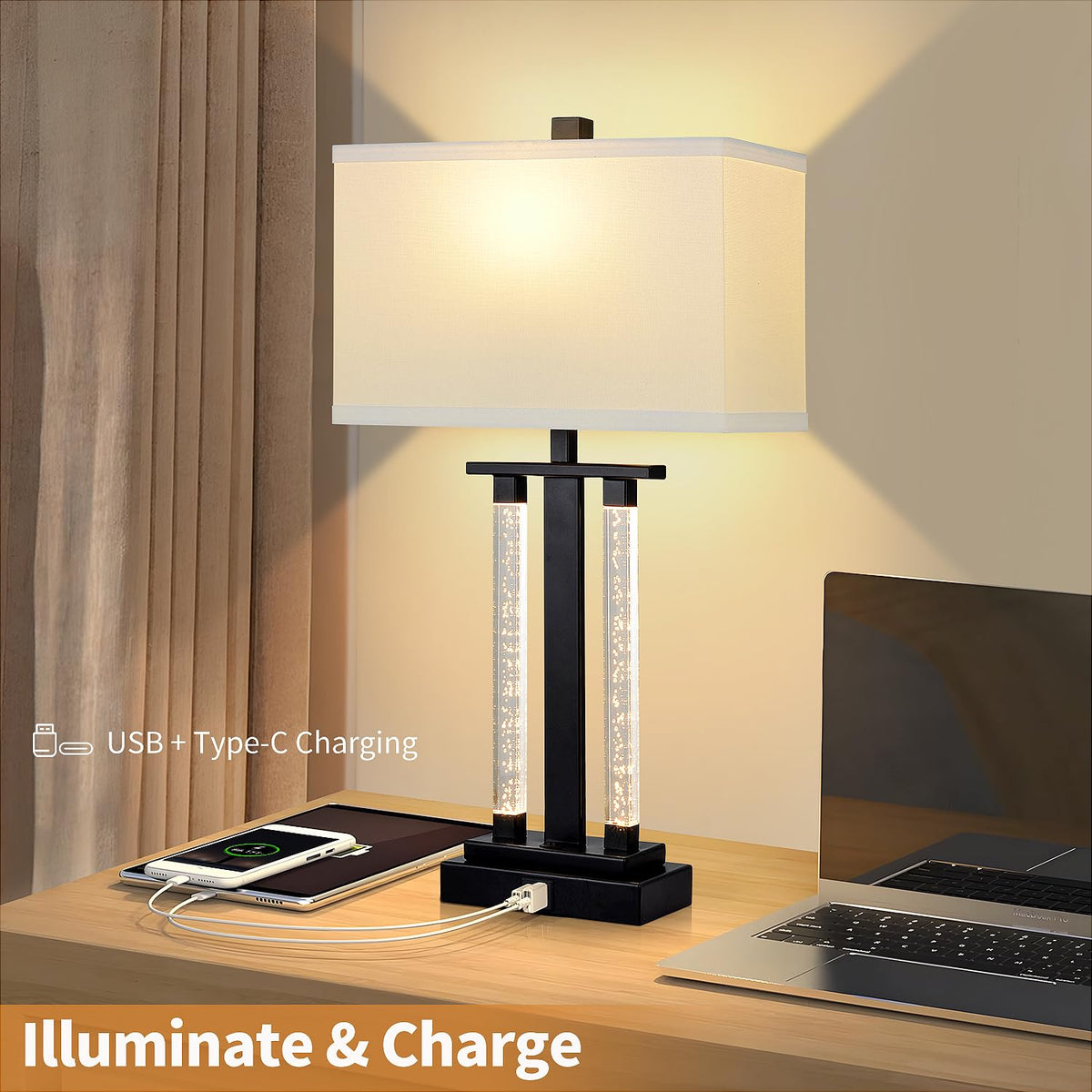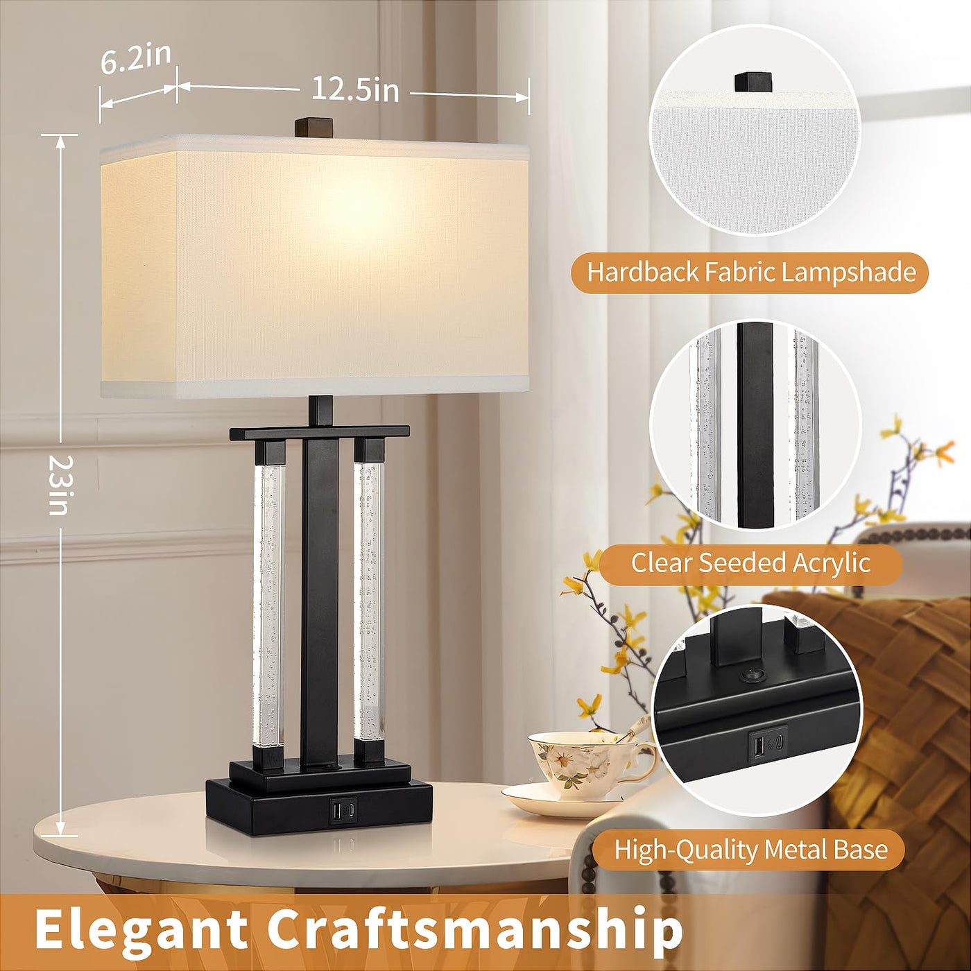 Q: What styles or decor themes do the Lovlast Modern Table Lamps complement?A: These lamps feature a classic modern design with a black fabric lampshade and seeded acrylic elements, making them suitable for various styles including modern, minimalist, industrial, and contemporary decor.