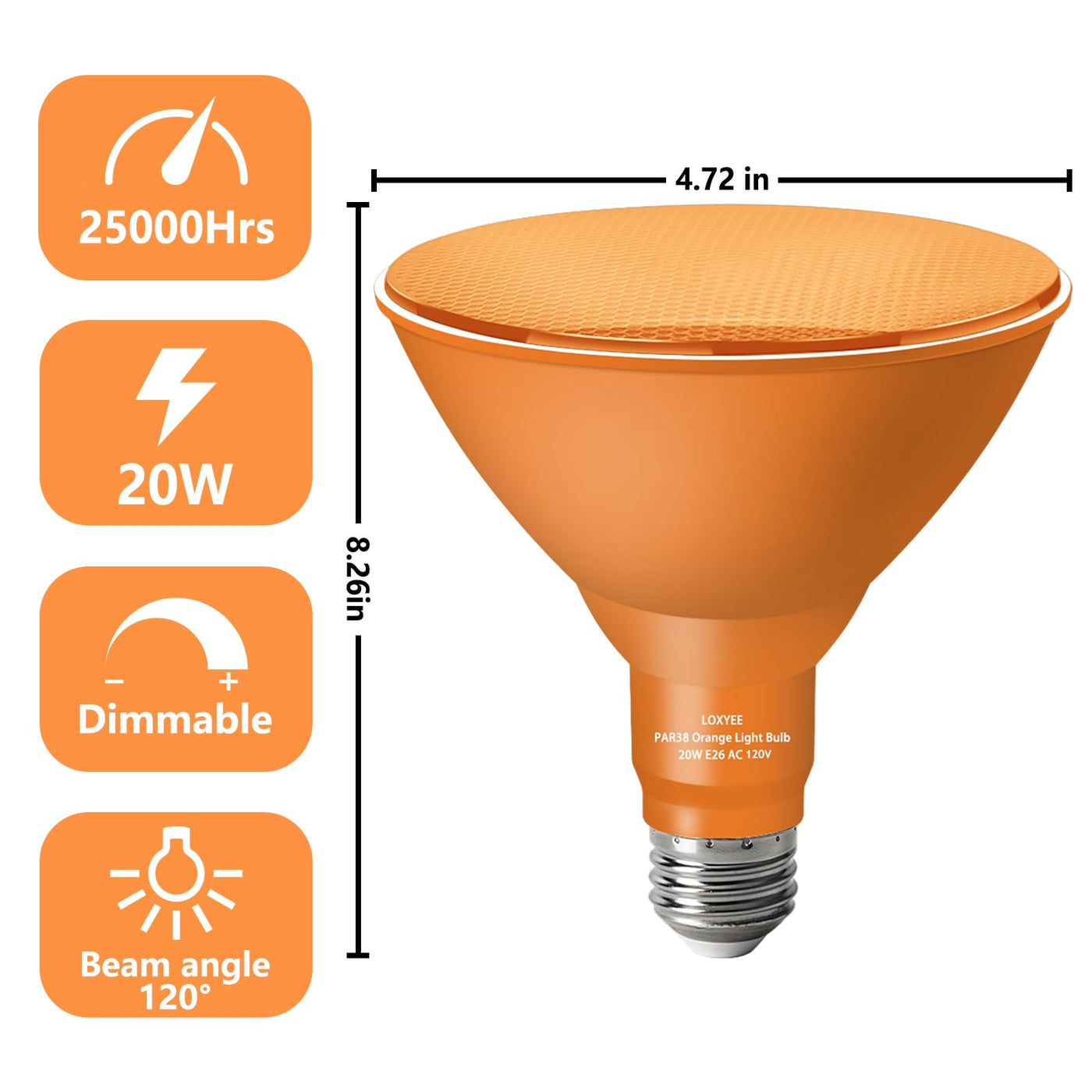 LOXYEE PAR38 Flood Orange Light Bulbs,2 Pack Dimmable,E26 Base Orange Flood Light Outoor(20W Replace to 200W),Halloween Light Bu