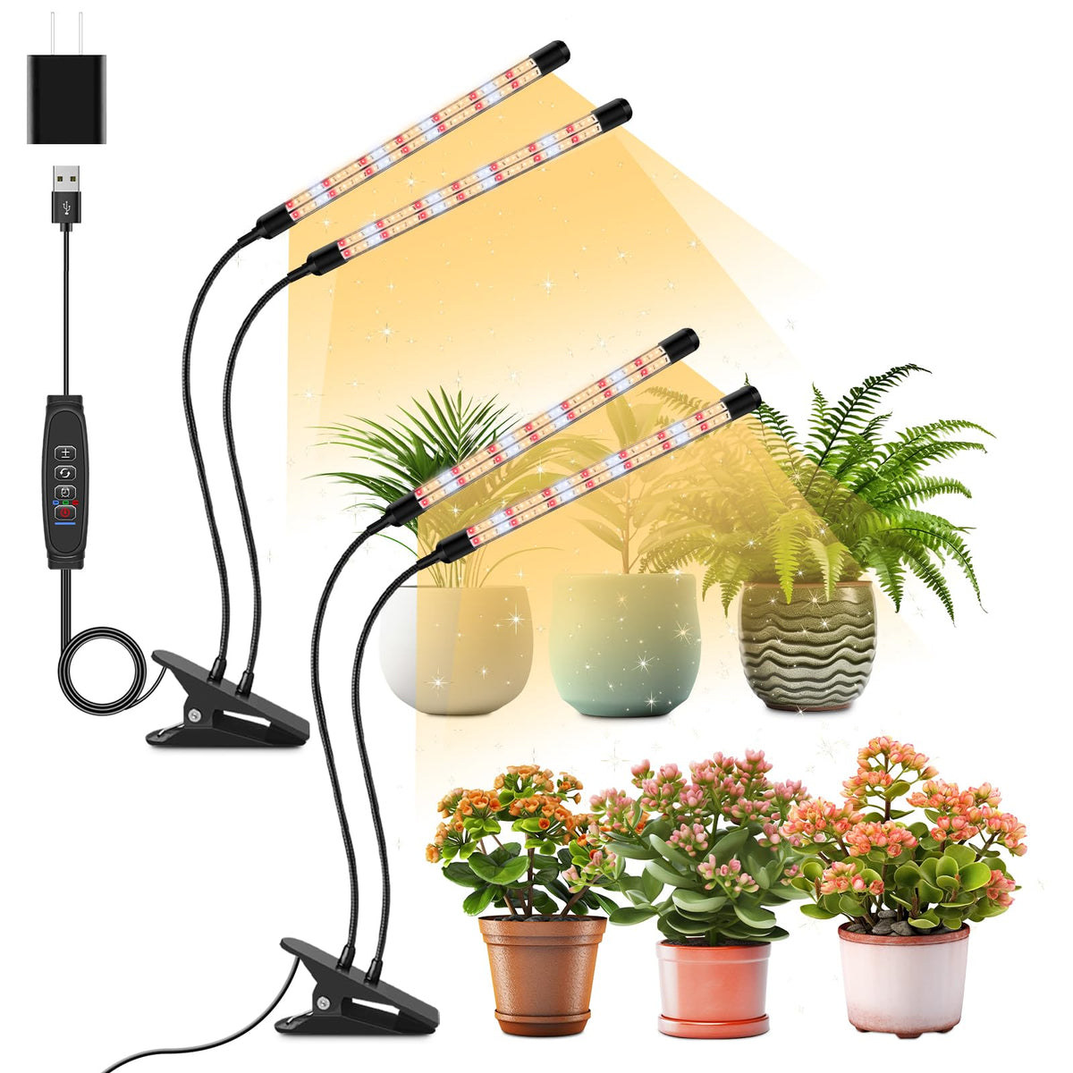 Lpmzmbl 4 Heads Clip Grow Light With V-Shaped Design, Full Spectrum Grow Lights For Indoor Plants, Adjustable 360° Gooseneck Grow Lamp, 3/9/12H Timer & 10 Dimming Levels For Plants Growing(2 Pack)