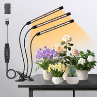 LPMZMBL Grow Lights for Indoor Plants, LPMZMBL Full Spectrum 3 Heads Plant Grow Light with Clip, 10 Dimmable Levels, and 3/9/12H Timer for Plant Growing (5V 3A)