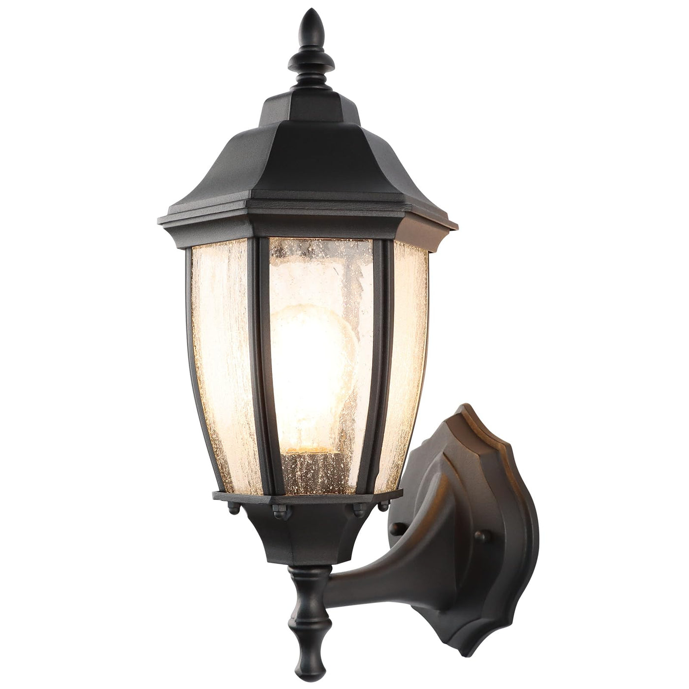 Lprzsg Outdoor Wall Lantern - 14" Black Waterproof Porch Light With Seed Glass Shade