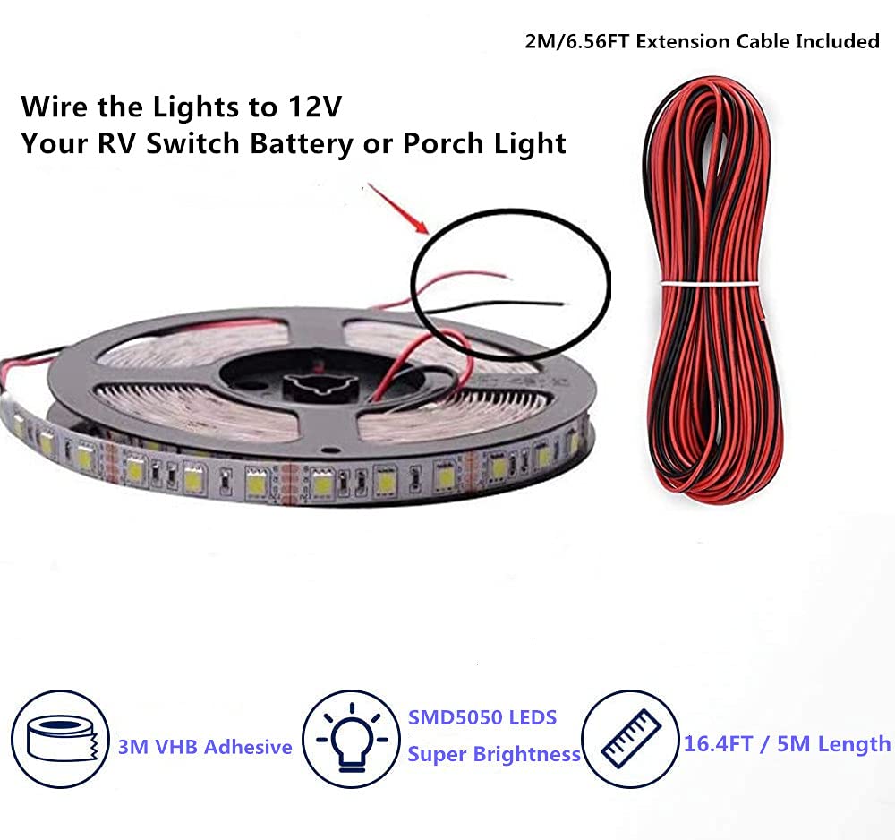 Lrimauix RV Awning Lights, 16.4FT Blue LED Strip Lighting, Waterproof for Motorhome and Travel Trailers, Model C5-BDDF-3AIV