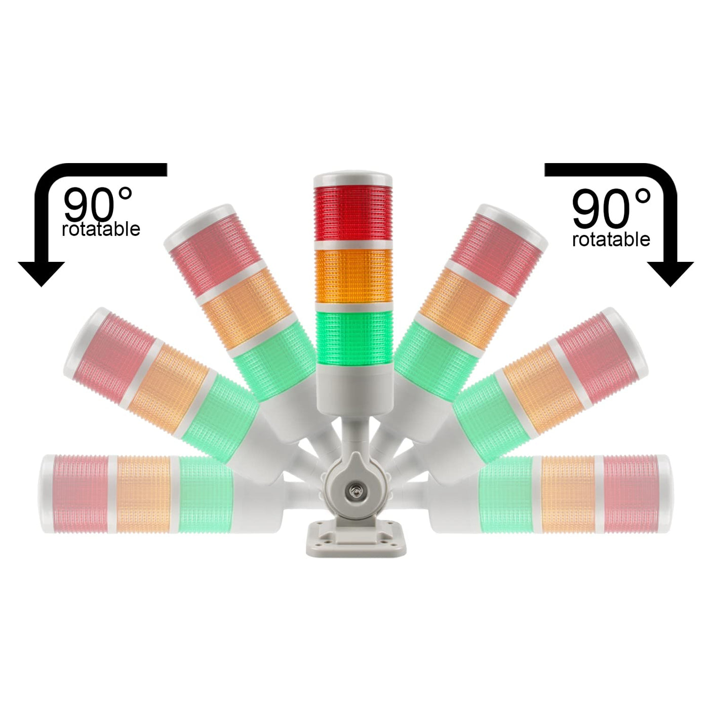 ?PRODUCT FEATURES? -100000 hours lifespan LED light -Lamp shade-PC, lamp shell-ABS, rotate base-ABS -Rated IP54 against dust and moisture for convenient industrial application -Able to select any light tier for flashing without needing to re-wire -Built-in buzzer optional for extra sound alarm -Mounting base with 180 rotation function -Industrial-grade material and construction -Pre-assembled, pre-wired