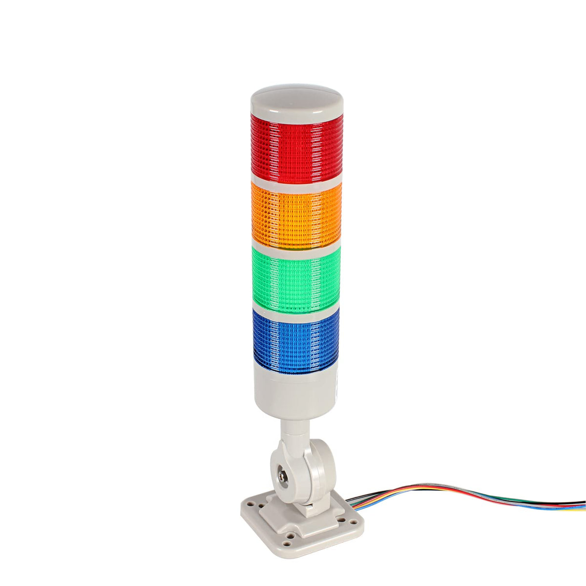 Luban Led Signal Tower Stack Lights, Industrial Signal Warning Lights, Column Tower Lamp Andon Lights With Rotatable Base, Steady/Flashing Light Switchable, 110V 220V Ac(4-Layer, No Buzzer)