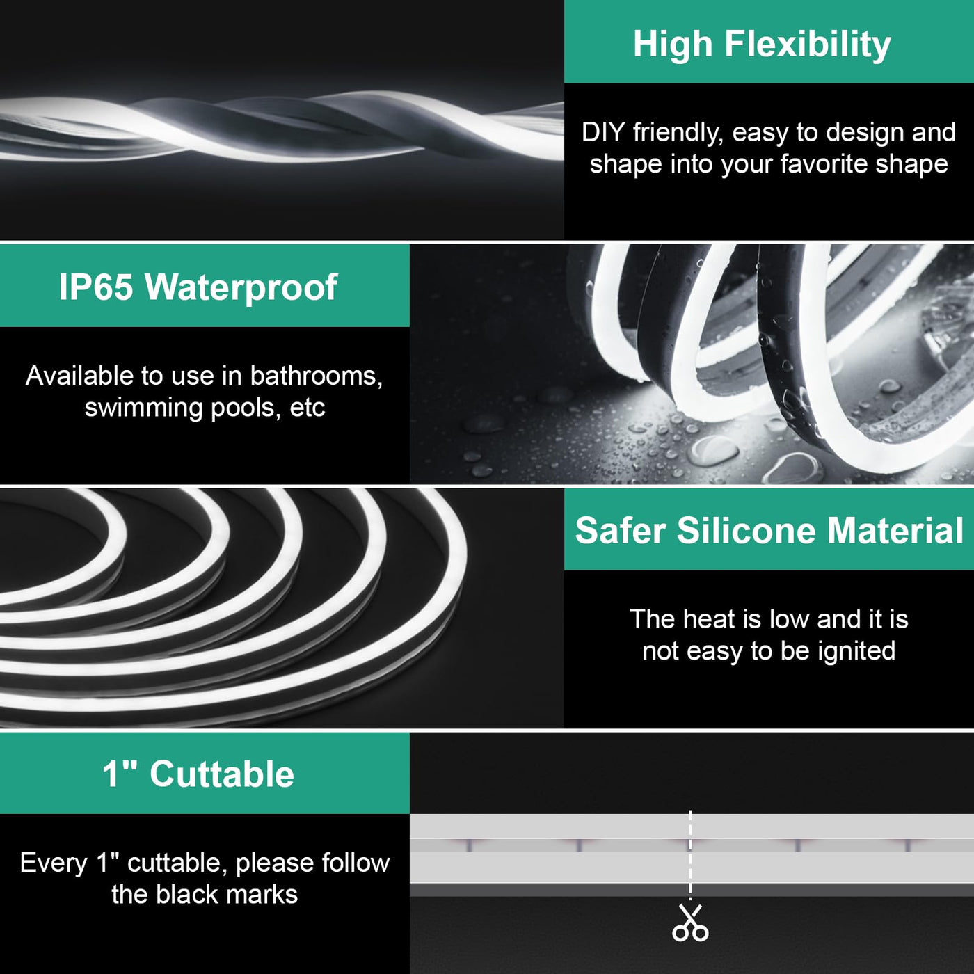 Lucienstar Neon LED Strip Lights 16.4ft IP65 Waterproof Dimmable Cool White Model LC-612