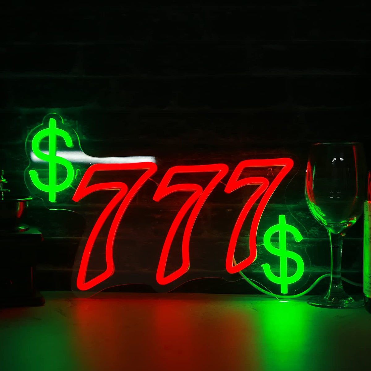 Q: What materials are used in the construction of the neon sign?A: The Lucky Seven Neon Sign is made from durable acrylic and utilizes the latest LED neon flex technology, which is both stronger and lighter than traditional glass neon.