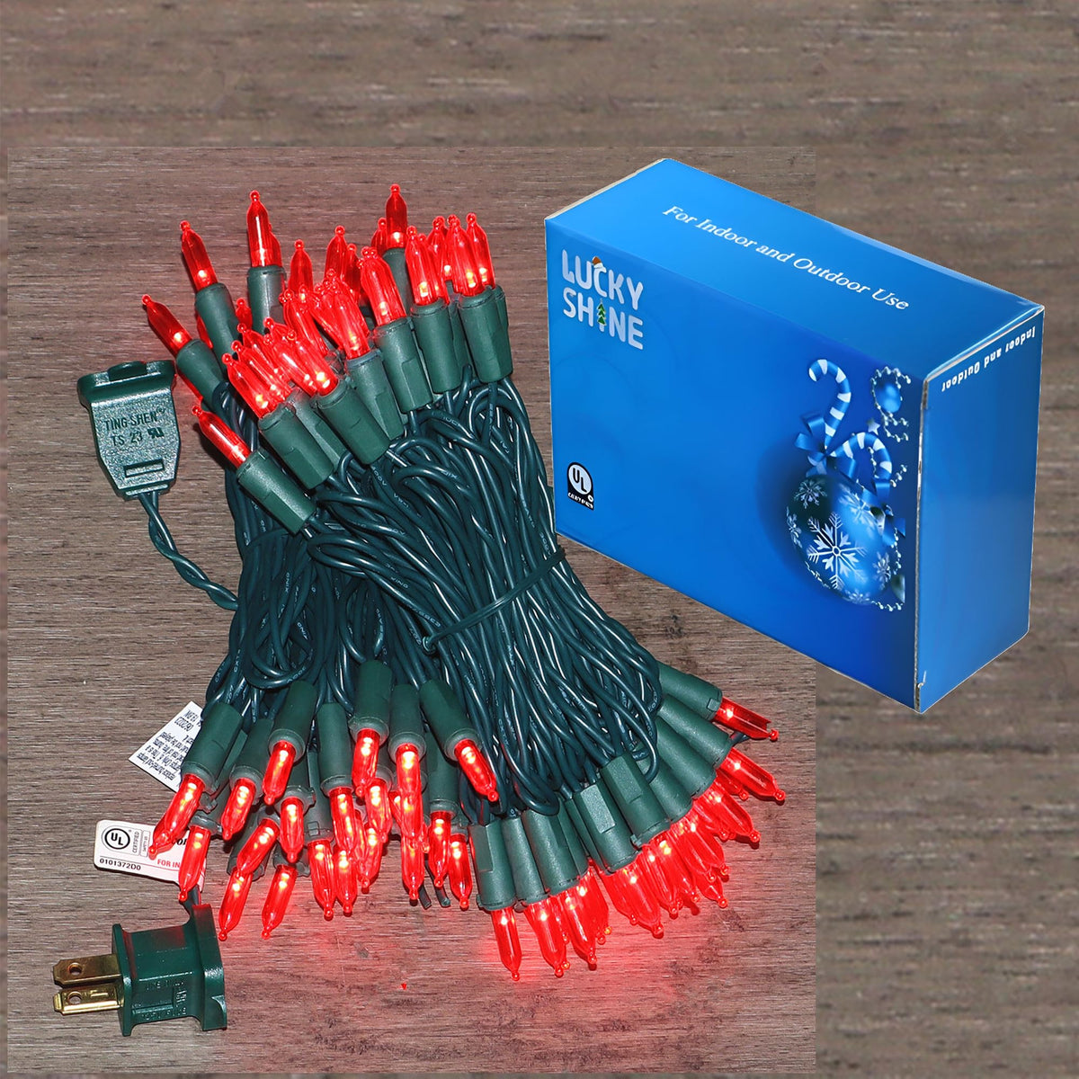 Lucky Shine 100 Red Christmas Lights, Commercial Grade Led Decorative Lighting String 35 Ft, For Indoor Outdoor Party, Trees, Pa