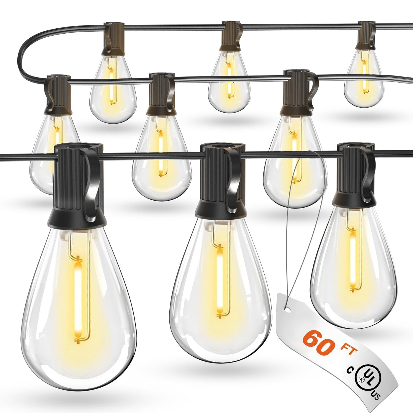 Luckystyle 60Ft Led Outdoor String Lights With 16+1 Edison Shatterproof Waterproof Bulbs, 2700K Commercial Grade Patio Lights, H