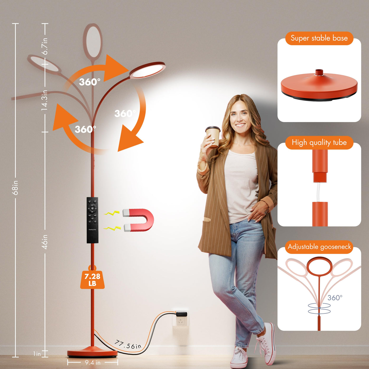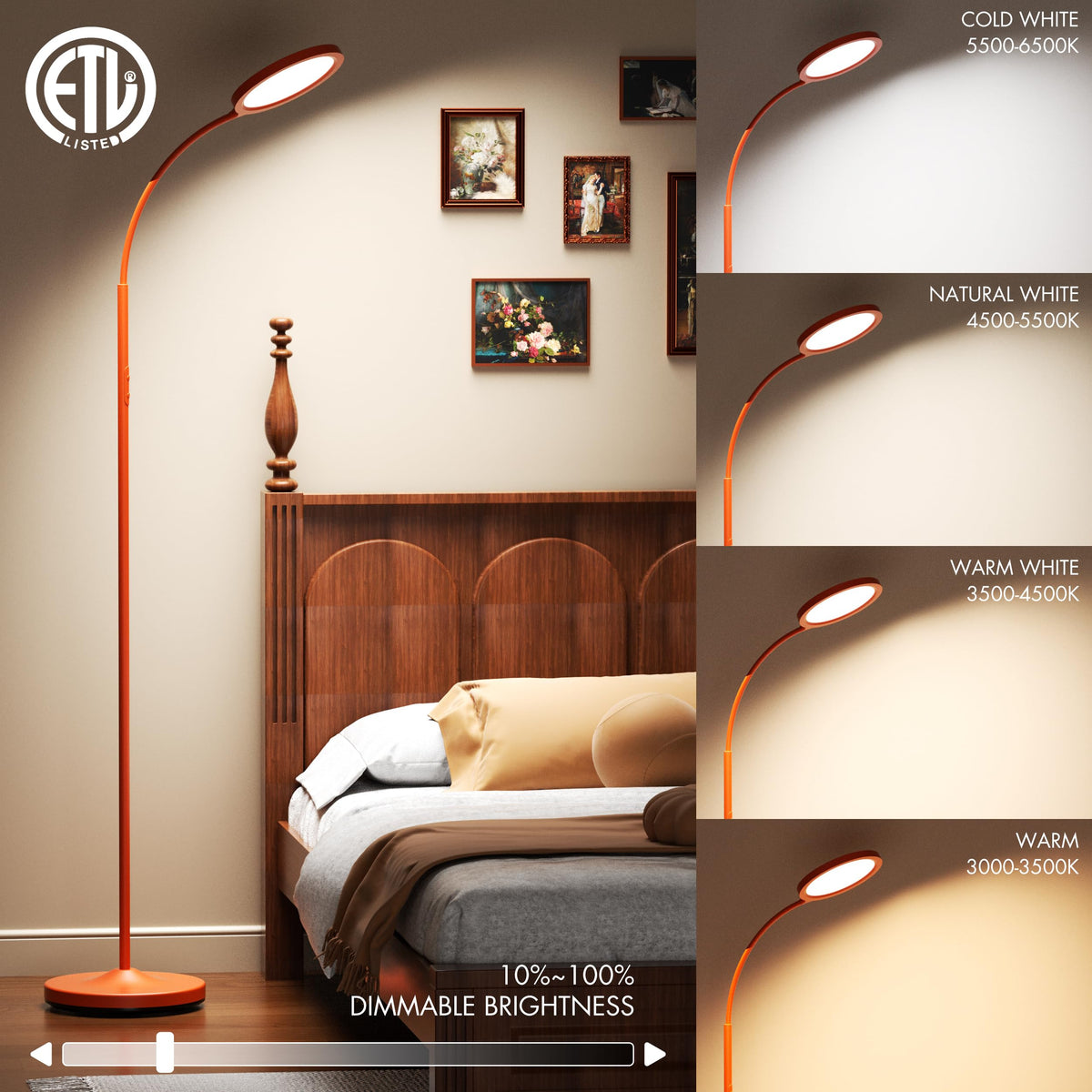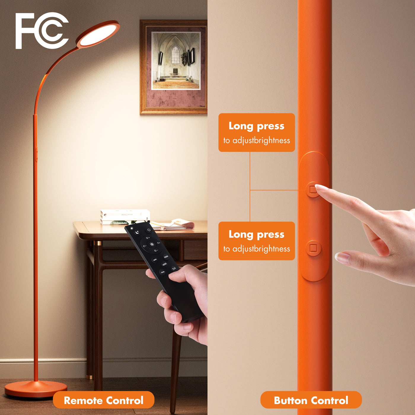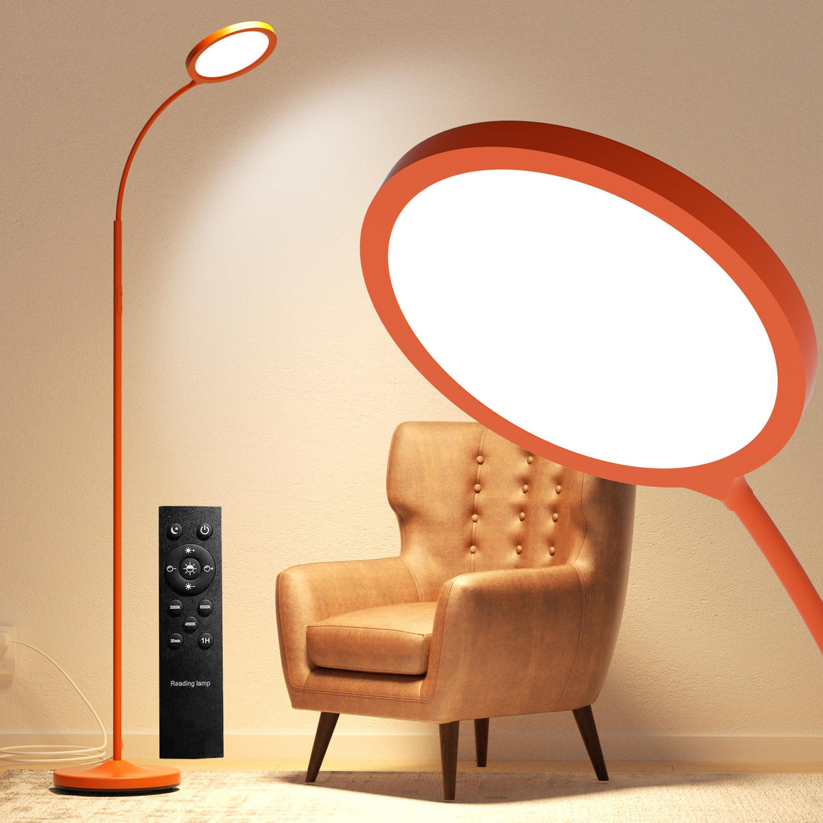 Luckystyle Orange Floor Lamp,Super Bright Dimmable Led Lamps For Living Room, Custom Color Temperature Standing Lamp With Remote Push Button, Adjustable Gooseneck Reading Floor Lamp For Bedroom Office