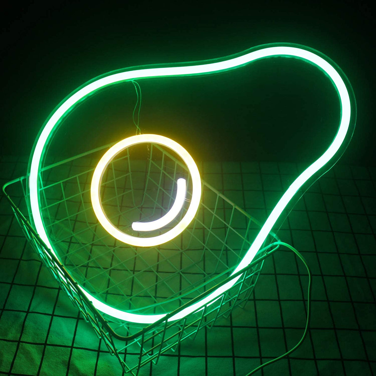 Lucunstar Green Avocado Neon Sign - Led Light For Kids Room, Wall Decor, Christmas Parties