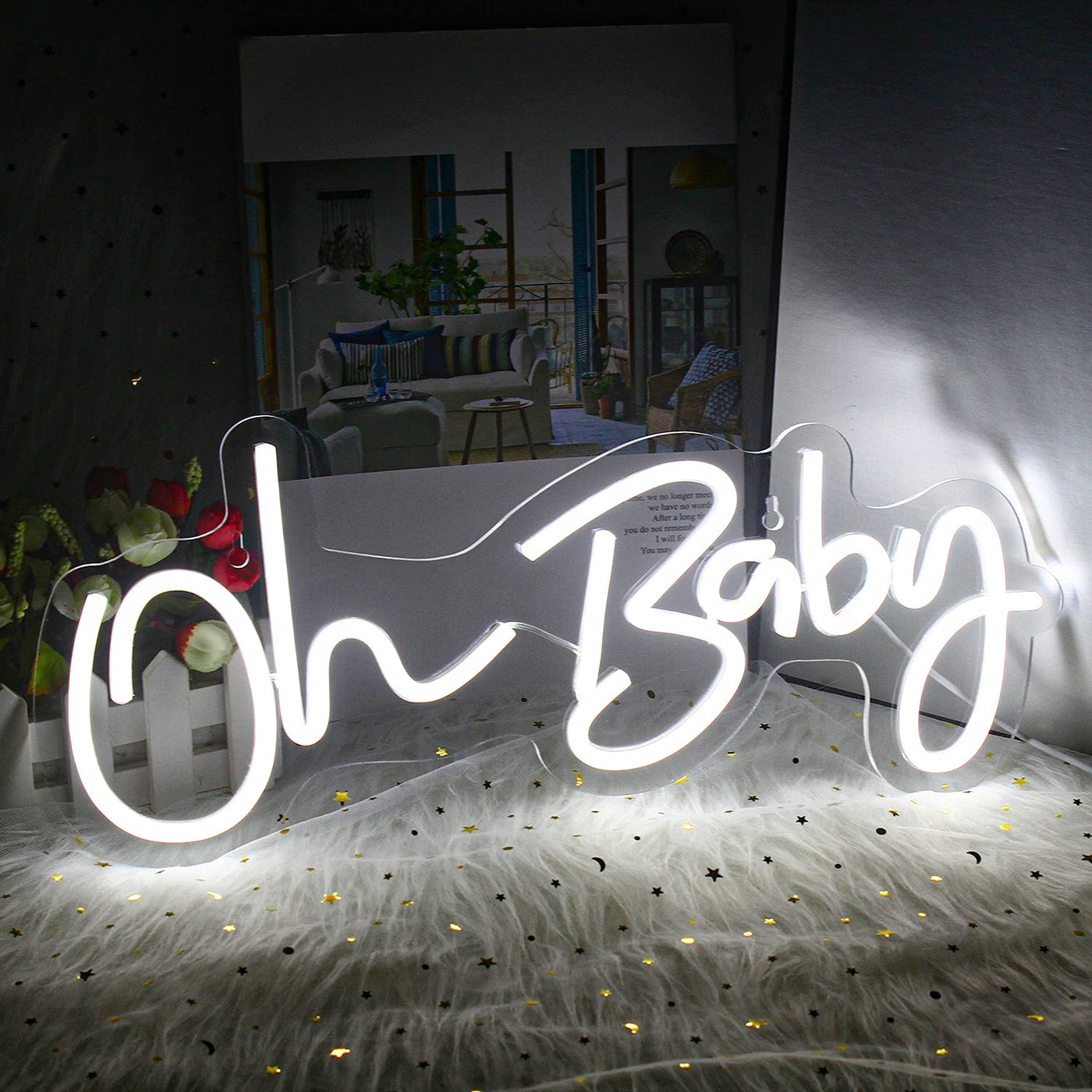 Lucunstar Neon Sign Oh Baby,Oh Baby Sign,Neon Light Oh Baby White Neon Sign For Wall Decor Neon Lights Sign Oh Baby Word Led Neon For Nursery Bedroom Game Party,Baby Shower Room Decor(16.5"X6.9")