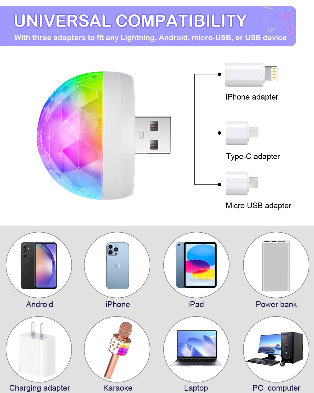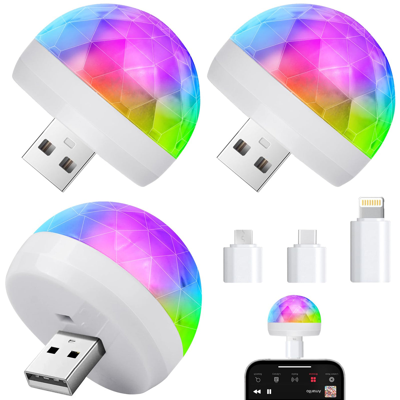 What’s Included: Package includes 3 USB disco ball lights, 3 sets of adapters, and satisfaction guarantee customer service.