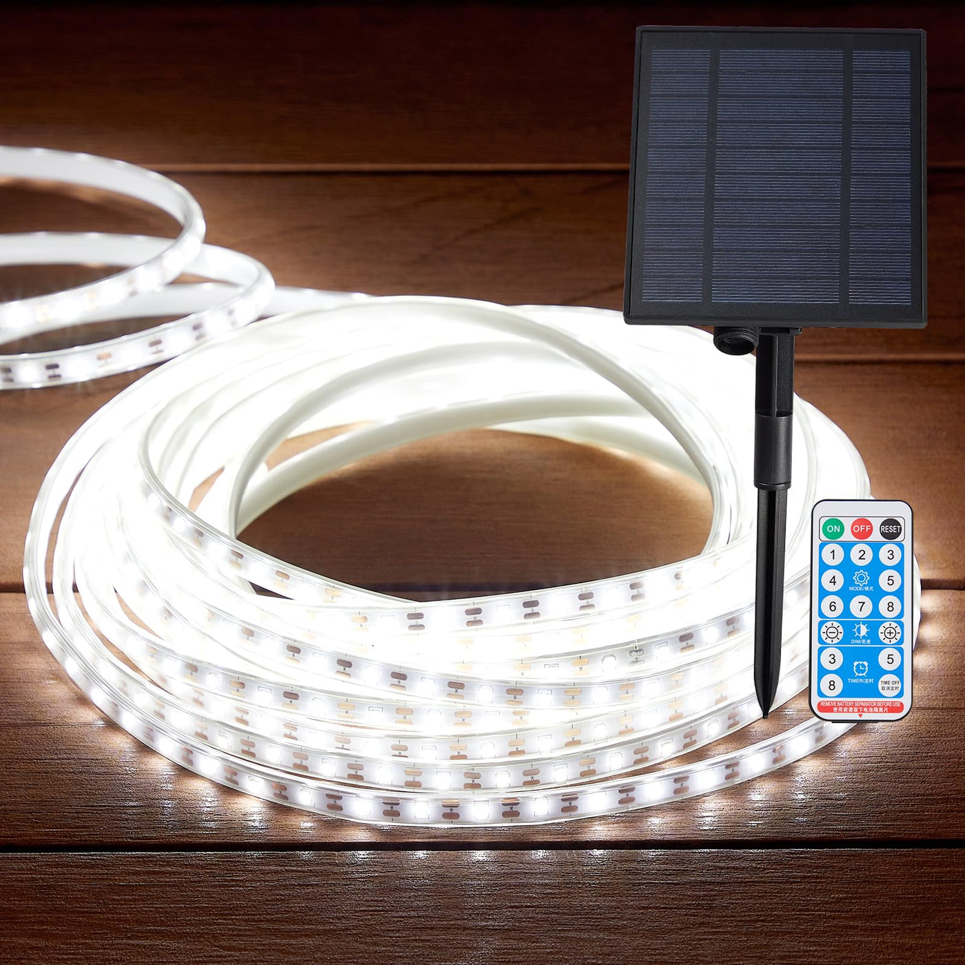Luhlee Solar Led Strip Lights Upgrade Outdoor Rope Lights 8 Lighting Modes Ip65 Waterproof String Lights For Patio Yard Deck Porch Balcony Garden (White 32.8 Ft)