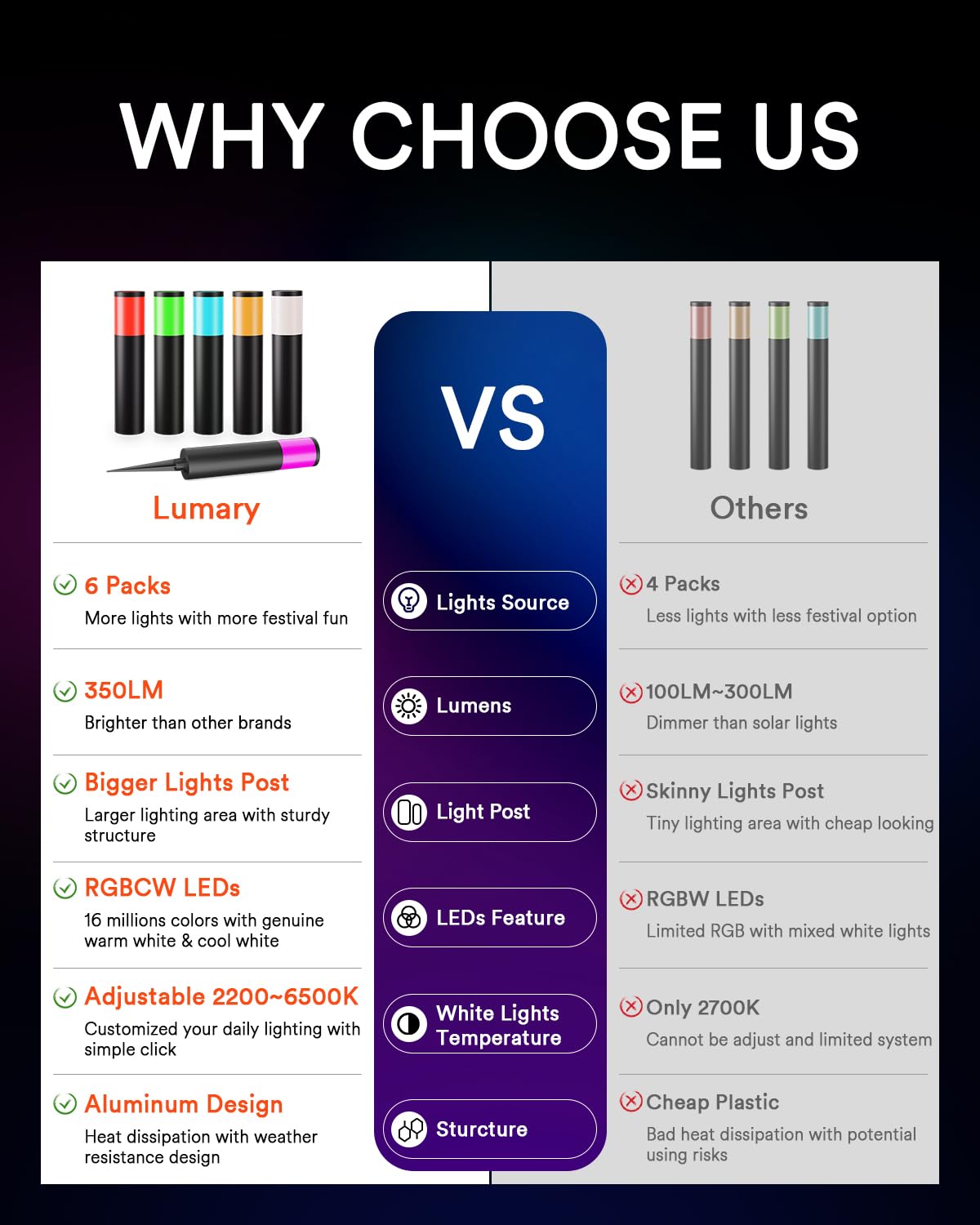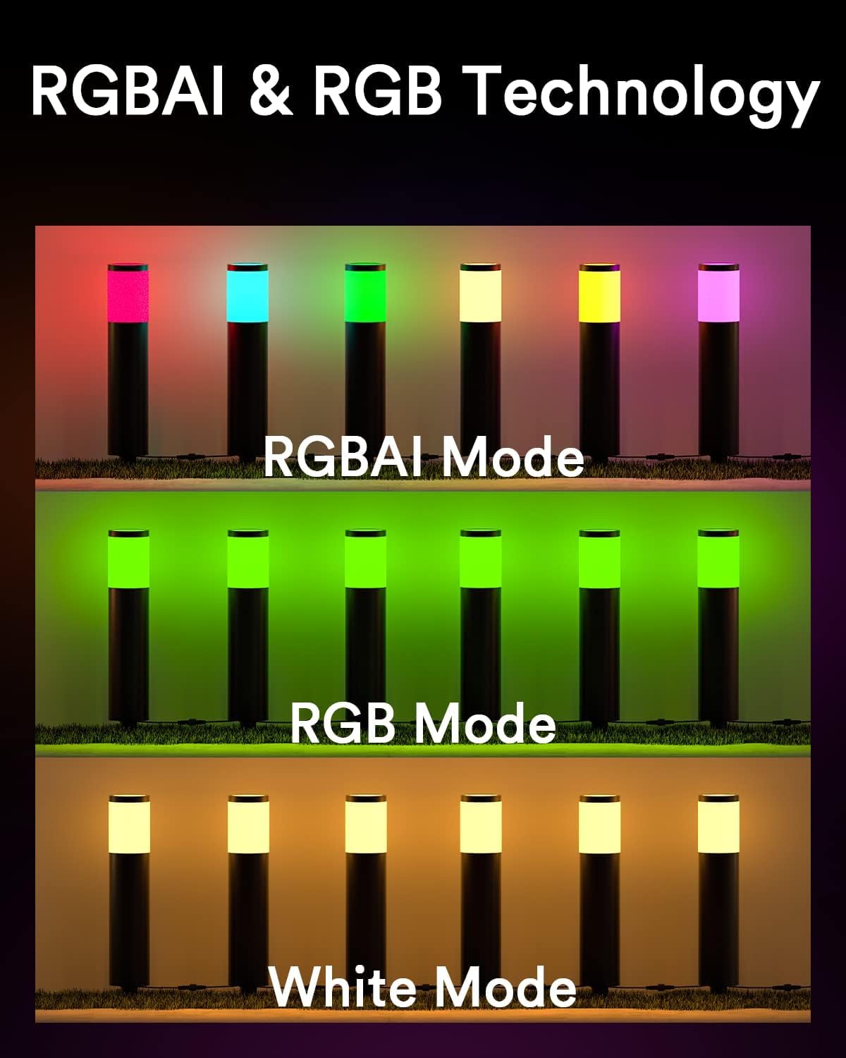Lumary 6 Pack Smart Pathway Lights 2100LM, RGBAI/Cool/Warm White, Aluminum Wired Landscape Lighting IP65 Waterproof Works with W