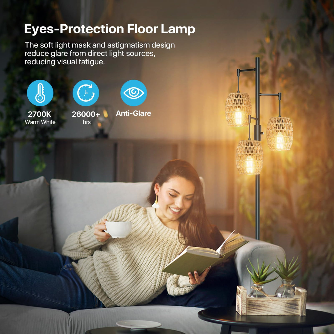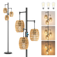 Lumenfox Boho Rattan Floor Lamp - Dimmable Floor Lamp 70 Inch With Shades, Coastal Floor Lamp 3 Light Bohemian Floor Lamps Stand