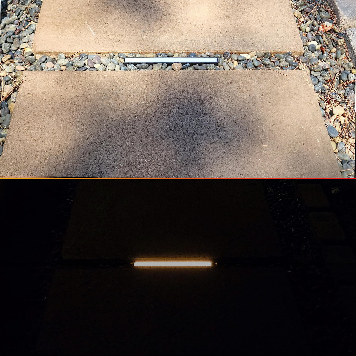 The Lumengy Paver Lane series features a stunning design with a super slim 0.5x8 (0.55 x 7.87 inches) size, perfect for creating thin linear highlights between pavers. This design adds sophistication and elegance to your outdoor space while ensuring safety and comfort with its glare-free effect and warm ambient 2700K light. The LUMENGY Paver Light Slim 0.5x8 Inch (0.55 x 7.87 inches) in Warm White is made with durable steel, ideal for brick lighting in pavers, walls, driveway, and pathway borders. It is waterproof, drive-over rated, and operates on a 12V AC/DC system, offering both durability and ease of installation.