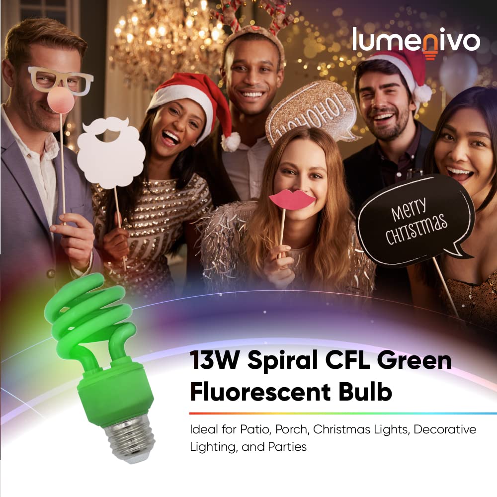 Lumenivo 13 Watt Spiral Cfl Green Light Bulb 13W Outdoor Green Light Bulb For Patio, Porch, Christmas Lights, Decorative Lightin