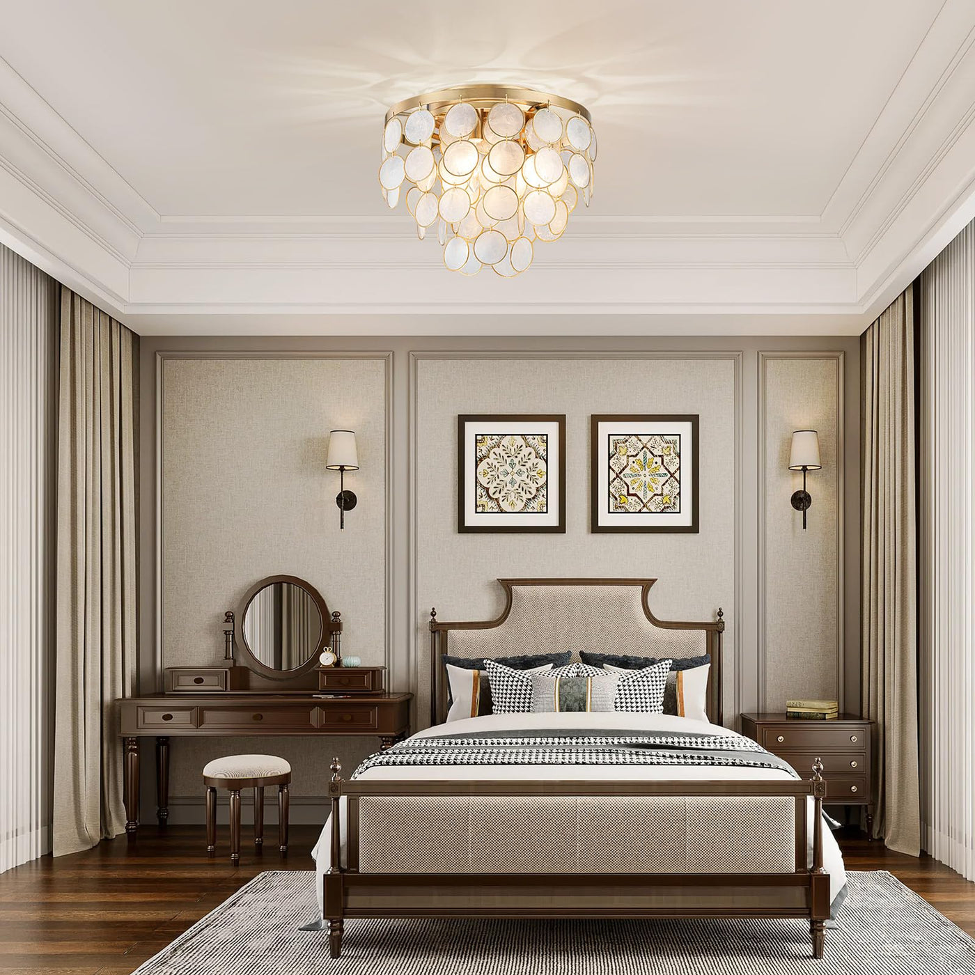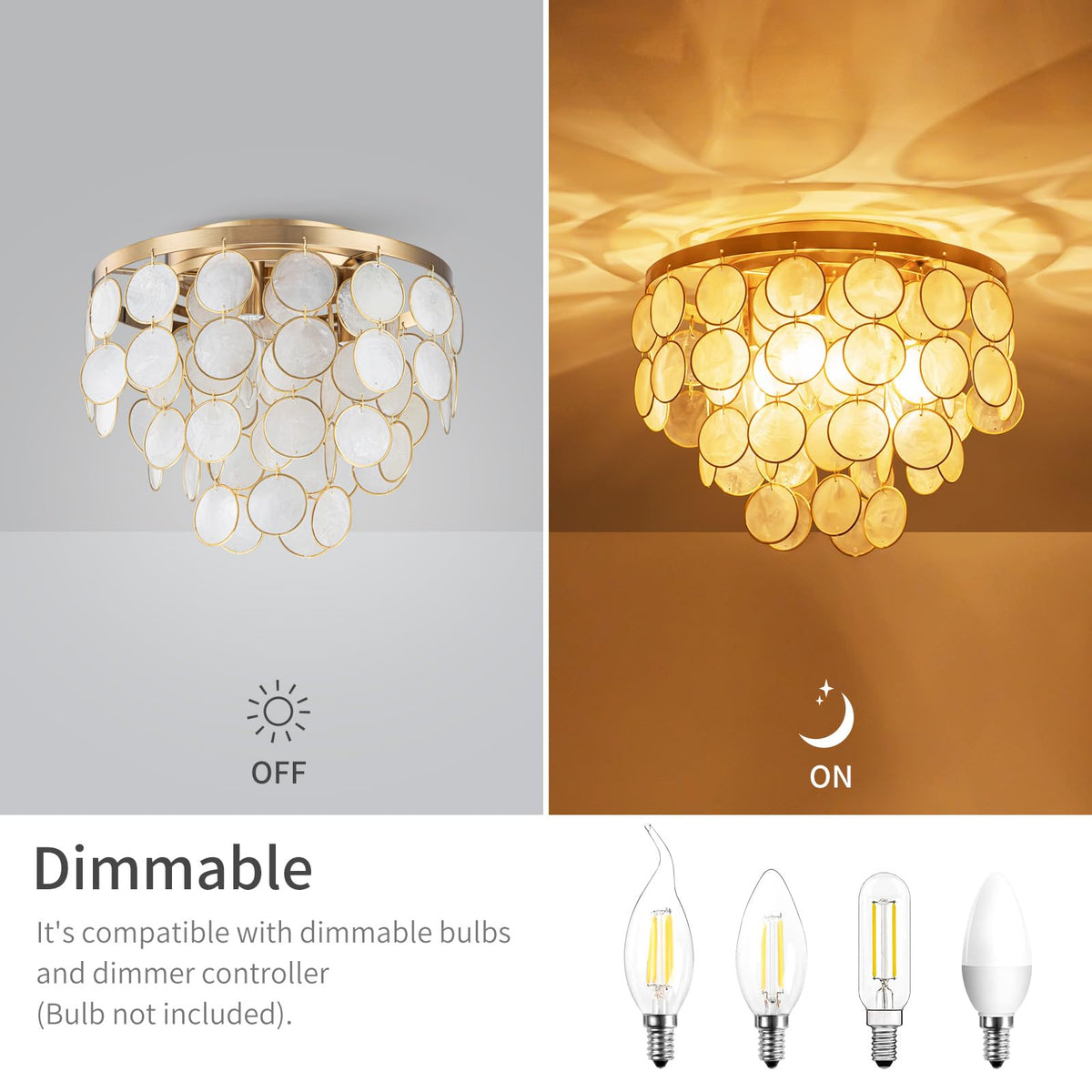 Lumfurn 3-Lights Capiz Shell Ceiling Light, Coastal Design Flushmount Light Fixture For Dining Room, Living Room, Bedroom, True