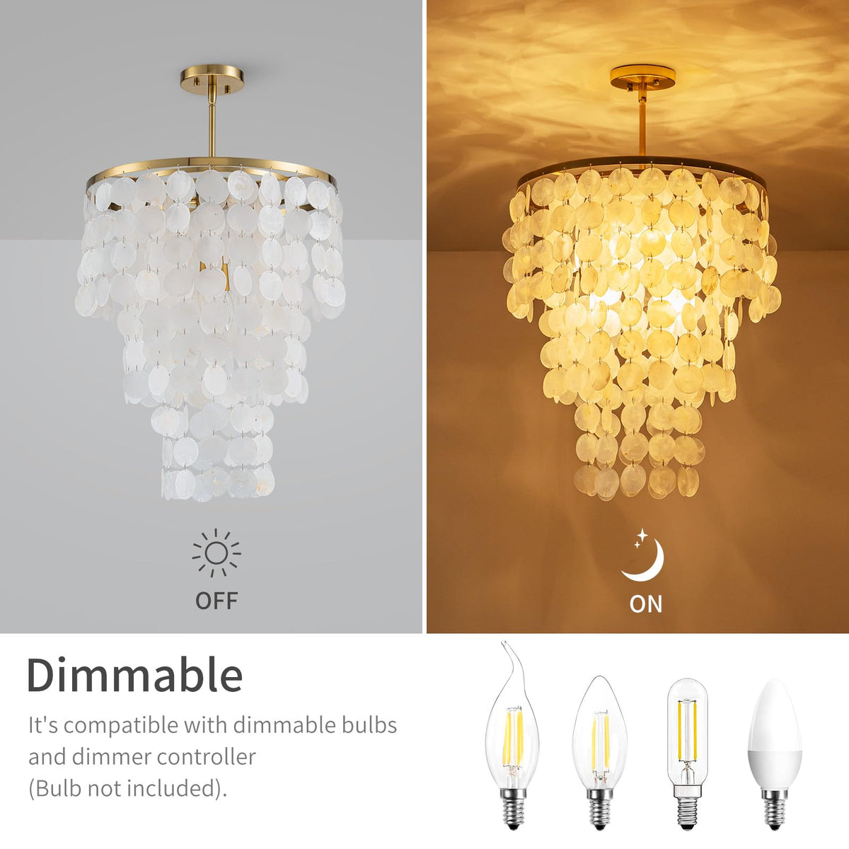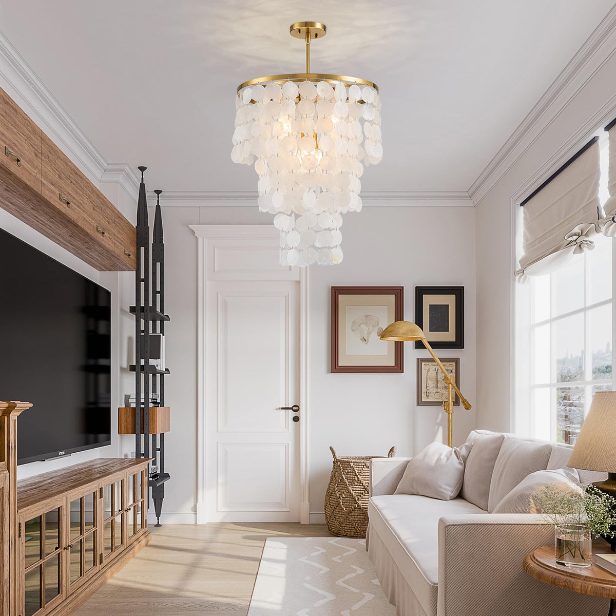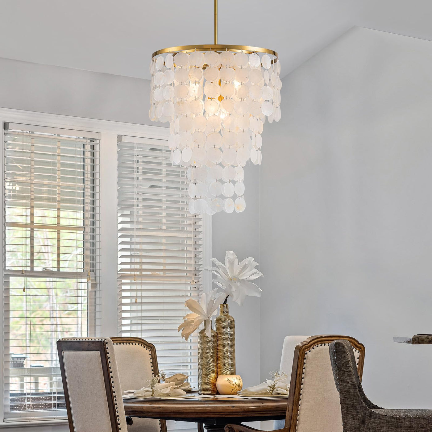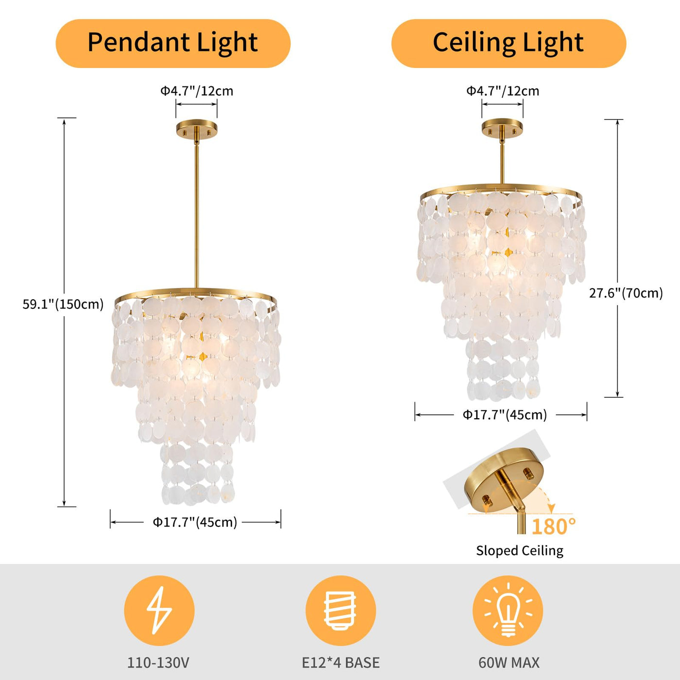 Lumfurn 4-Lights Capiz Shell Chandeliers, 3-Layer Modern Pendant Light Fixture For Dining Room, Living Room, Bedroom, D17.7 X H2