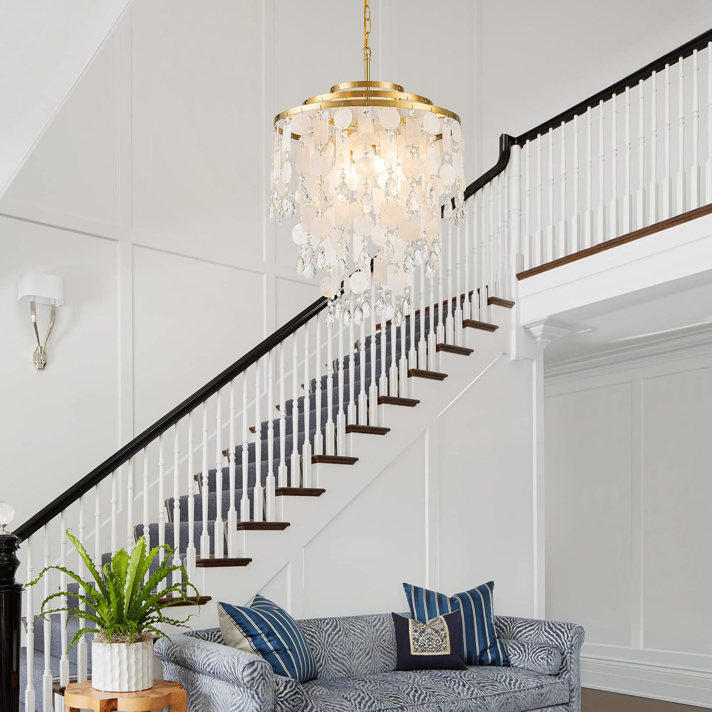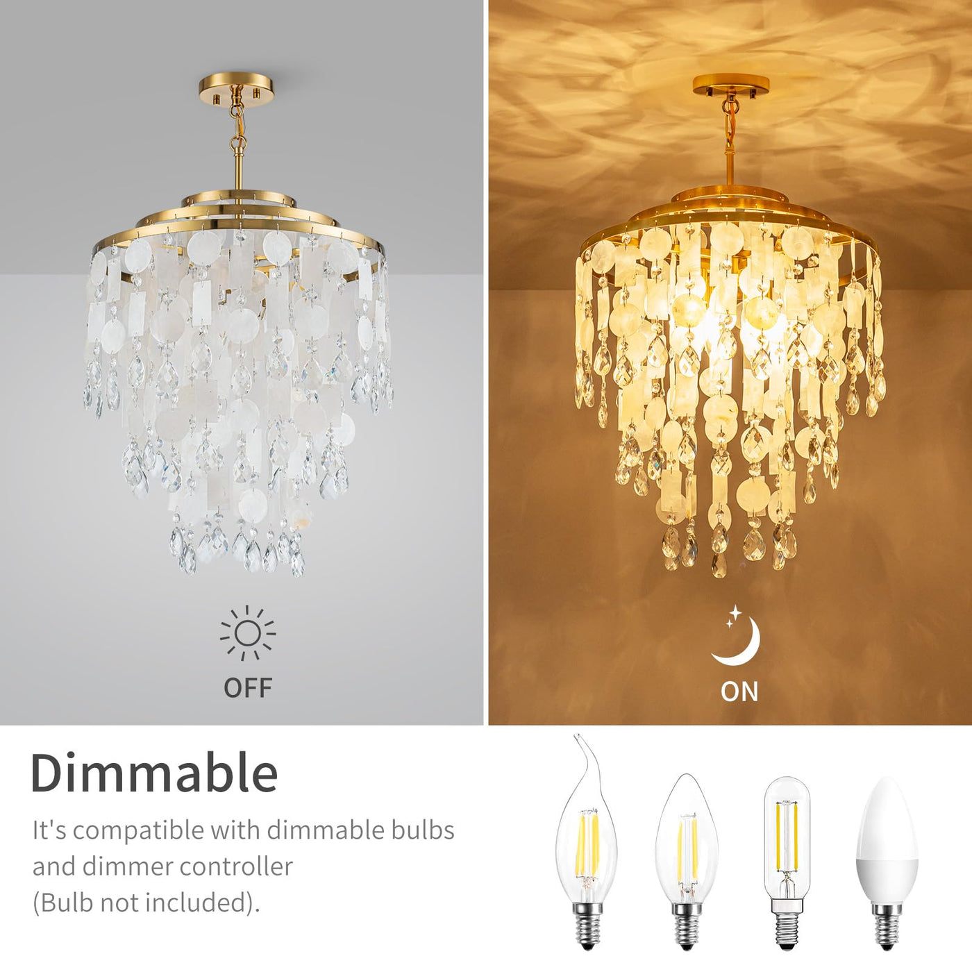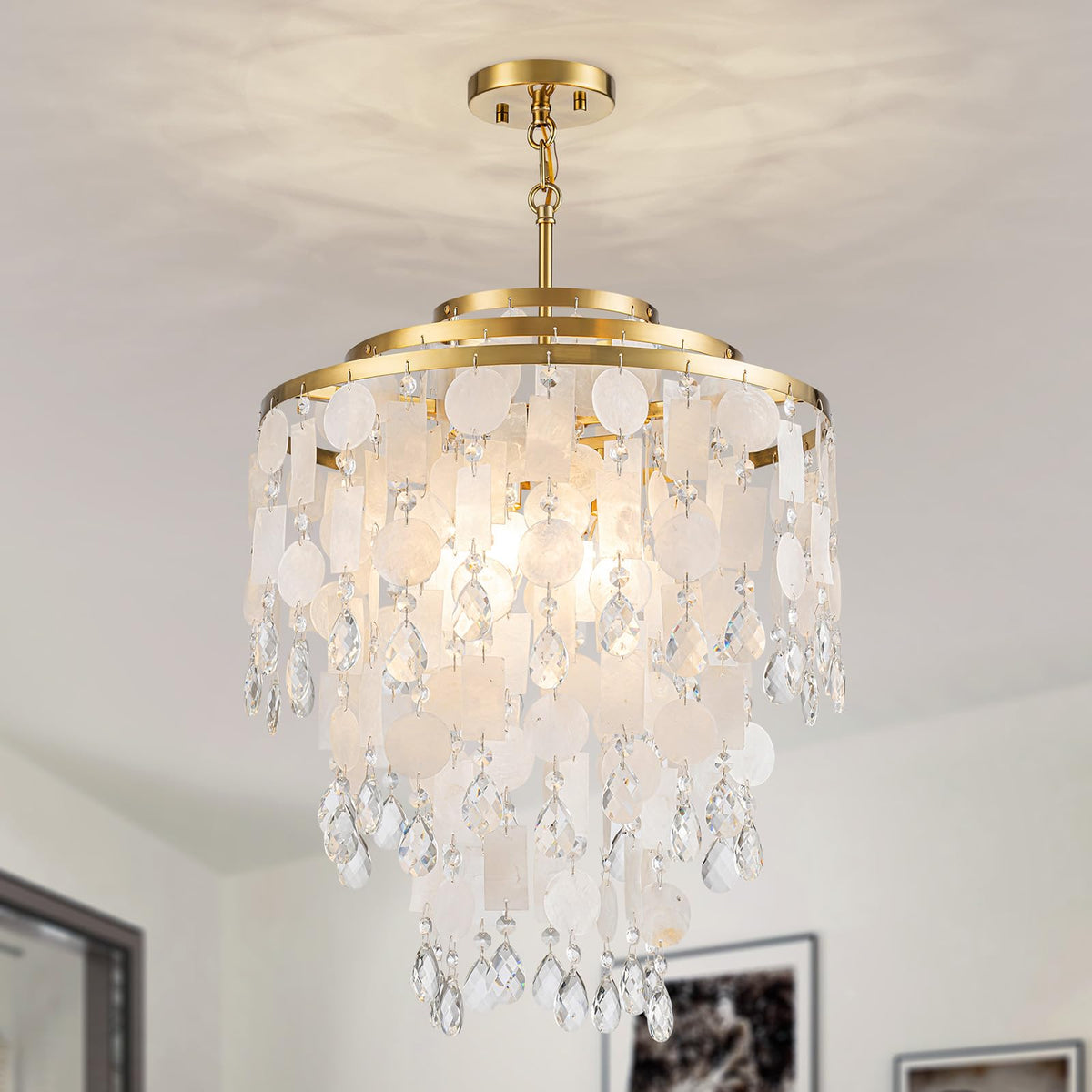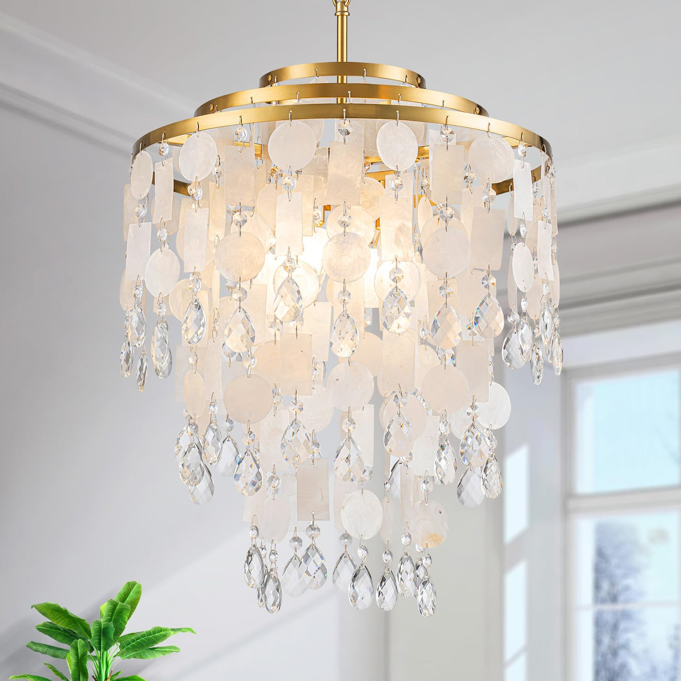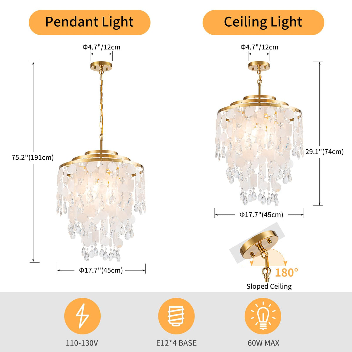 Lumfurn 4-Lights Capiz Shell Chandeliers, For Dining Room, Living Room, Bedroom, 3-Layer Modern Pendant Light Fixture D17.7 X H2