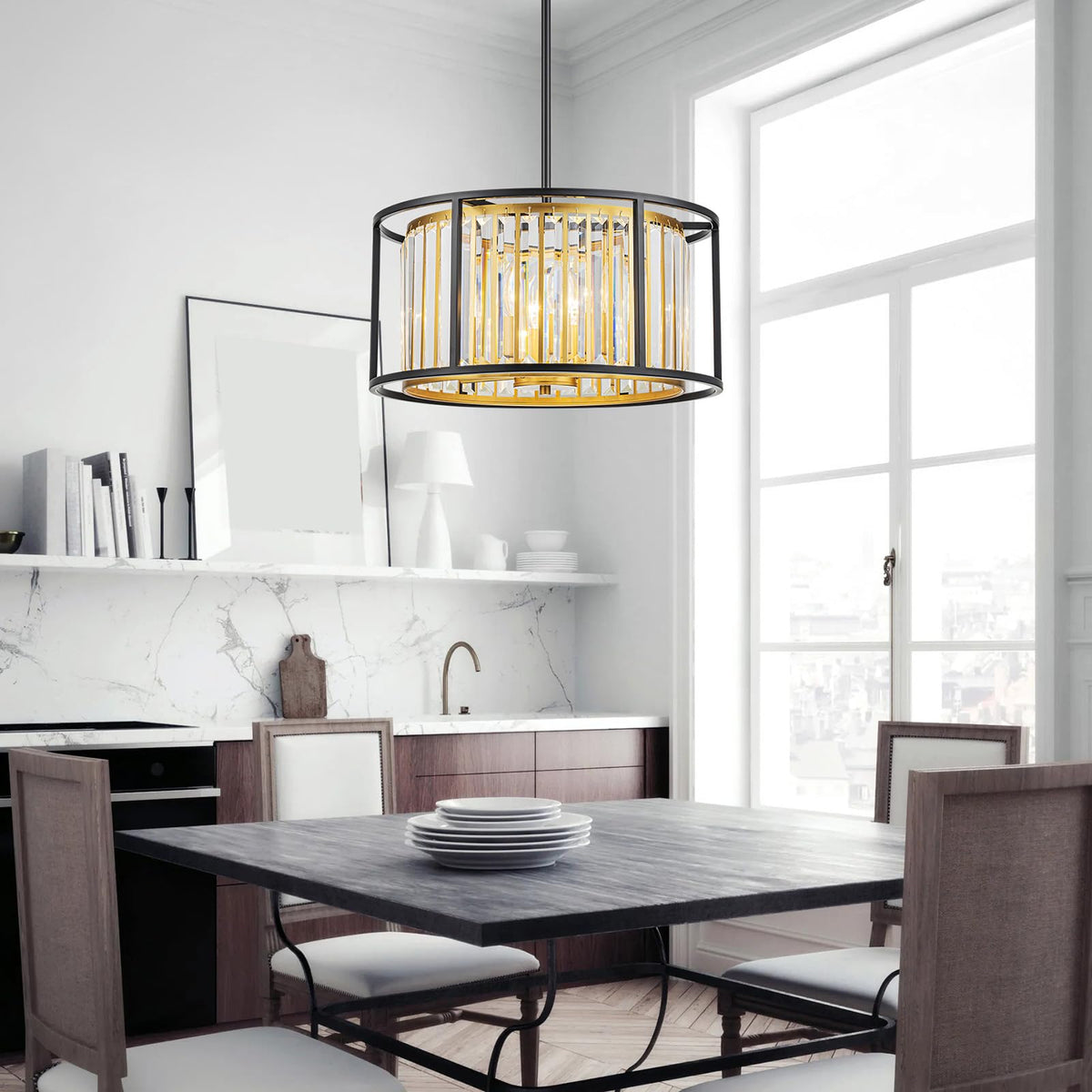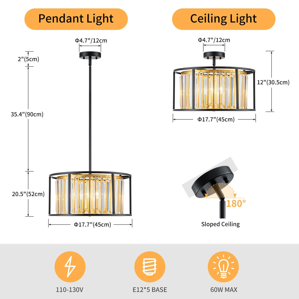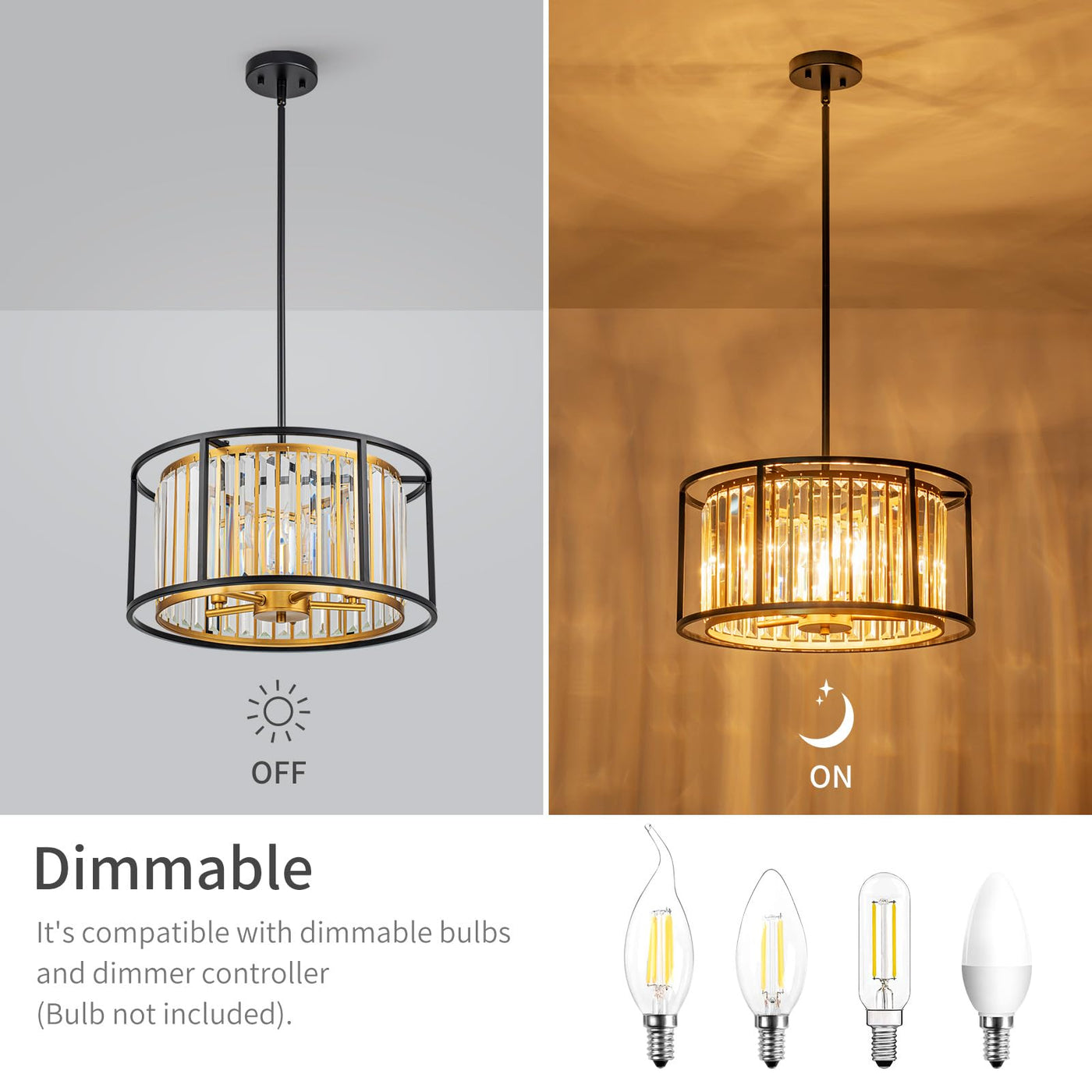 Lumfurn 5-Lights Crystal Drum Chandeliers, 2-Layer Modern Pendant Light Fixture For Dining Room, Living Room, Bedroom, Adjustabl