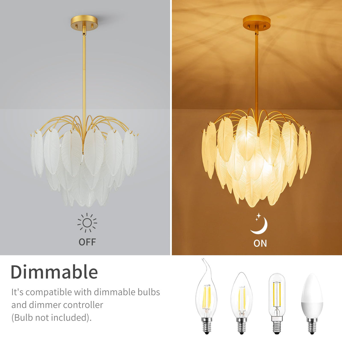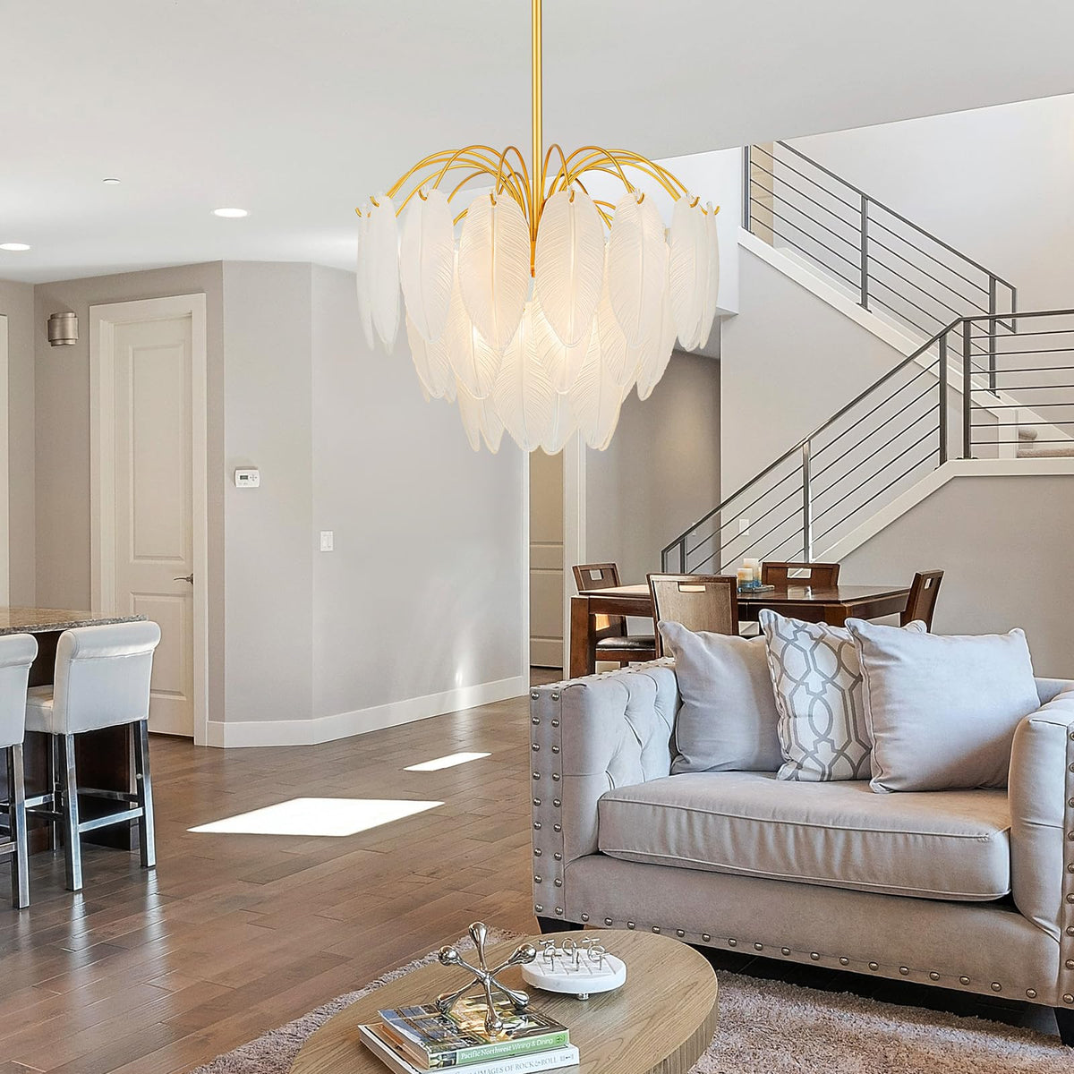 Lumfurn 6-Lights Gold Chandeliers, Modern 3-Tier Pendant Light Fixture For Dining Room, Living Room, Adjustable Height 19~51'',