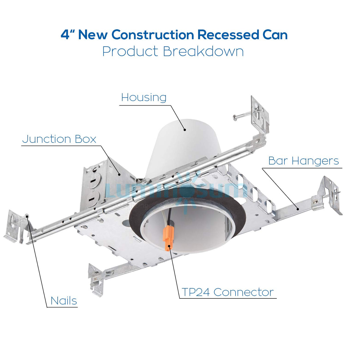 Luminosum 4 Inch New Construction Recessed Can, Air Tight Ic Housing, With Tp24 Connector And E26 Socket, Ul-Listed, 8-Pack