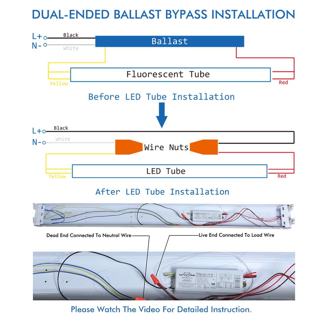 Luminosum T8/T10/T12 4 Foot Led Light Tube 20W 48 Inch, 40W Equivalent, Natural White 4000K, Clear Cover, Dual-End Powered, Ball