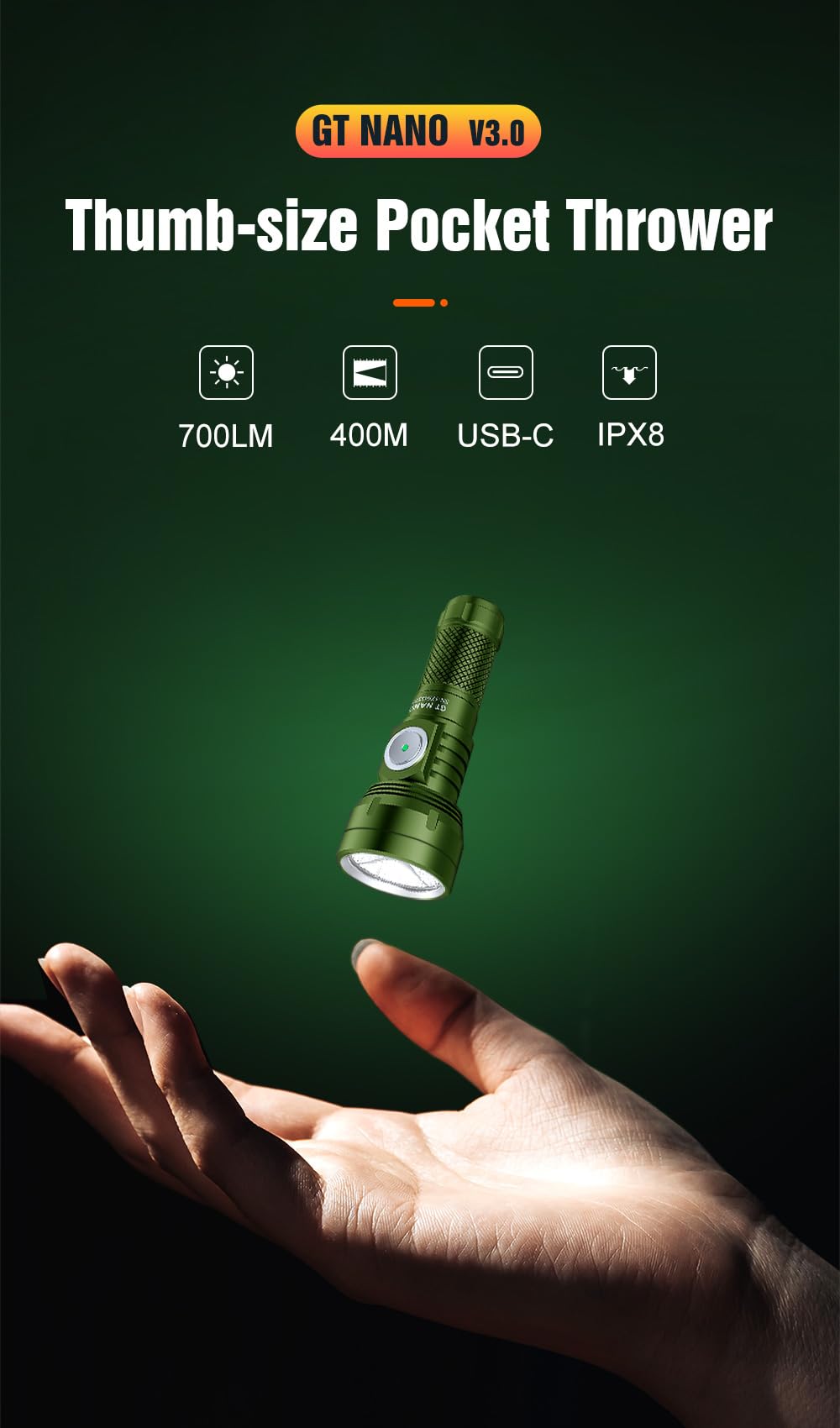 Lumintop Gt Nano Keychain Flashlight 450 Lumens Mini Flashlight 300 Meters Beam Distance Single 10180 Li-Ion Battery (Included)