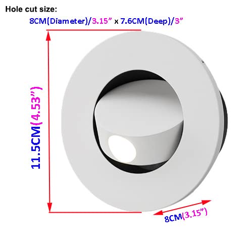 Luminturs Modern Wall Sconce Light Fixture,Recessed Wall Lamp,Bedside Reading Lamp,Path/Step Light,Gimbal Hidden On/Off Switch,Circle Aluminum White,Led 3W Warm White 3000K,Adjustable&Rotatable