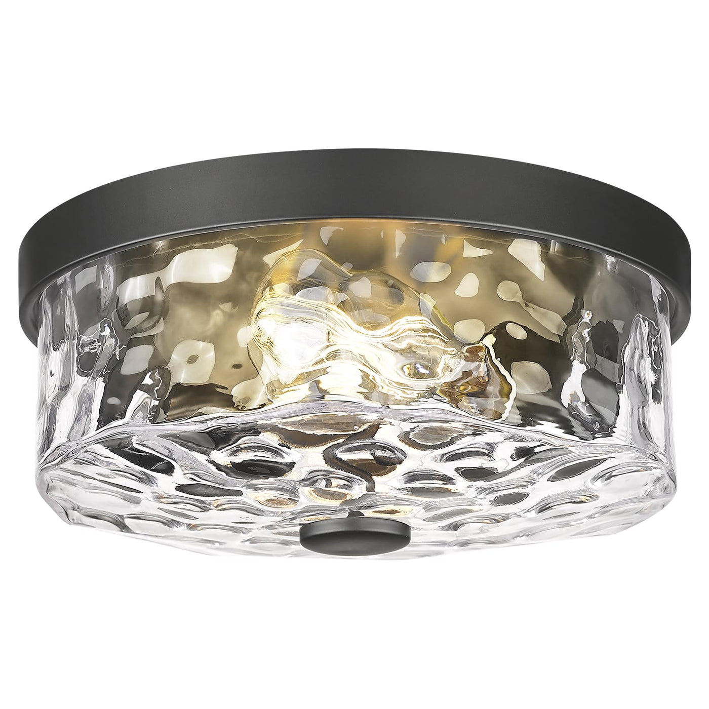Luminzone Flush Mount Ceiling Light With Water Ripple Glass Shade, Modern 2-Light Ceiling Lighting For Kitchen Living Room Porch