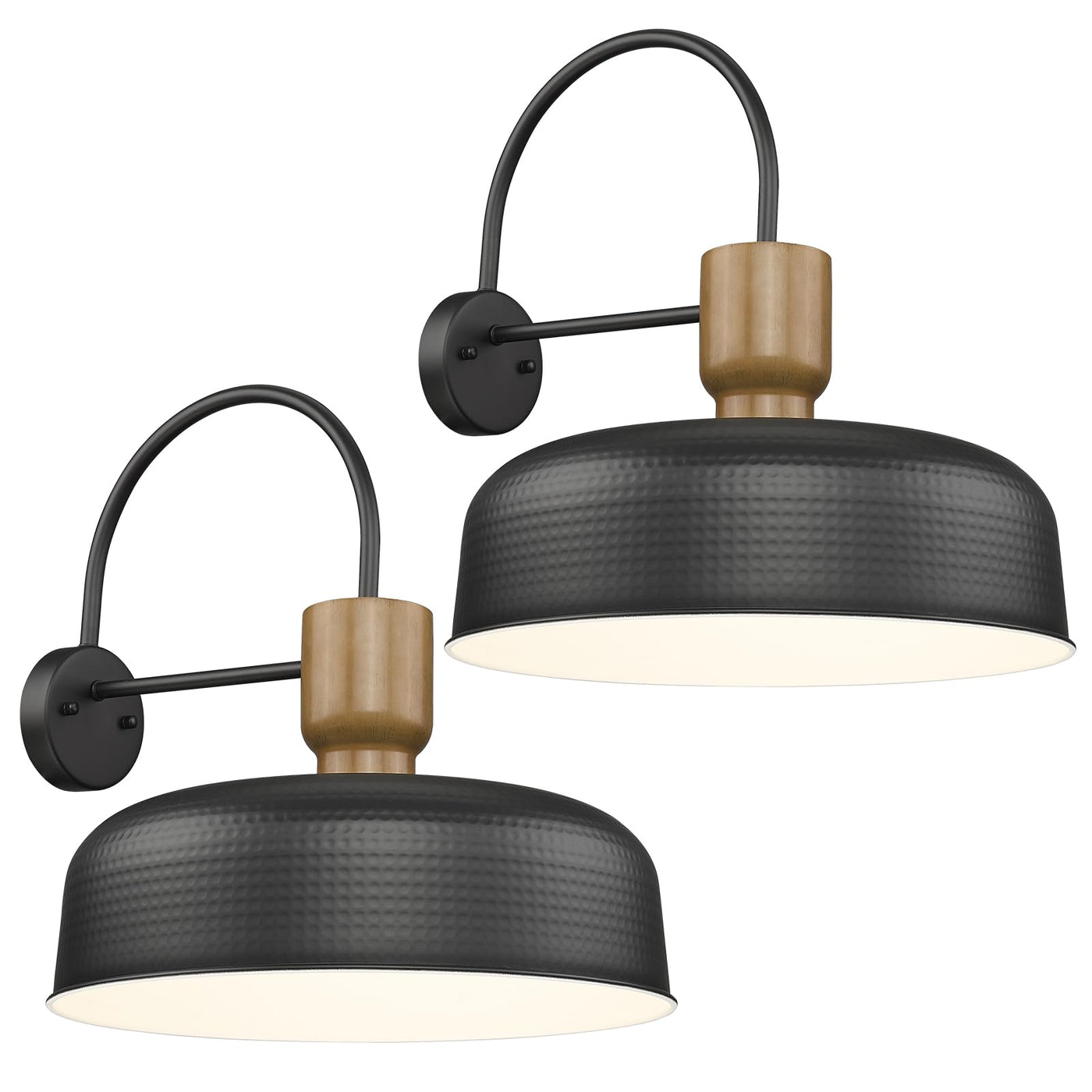 Luminzone Gooseneck Barn Light - Vintage Black Wall Lantern, Large 2 Pack For Outdoor Use