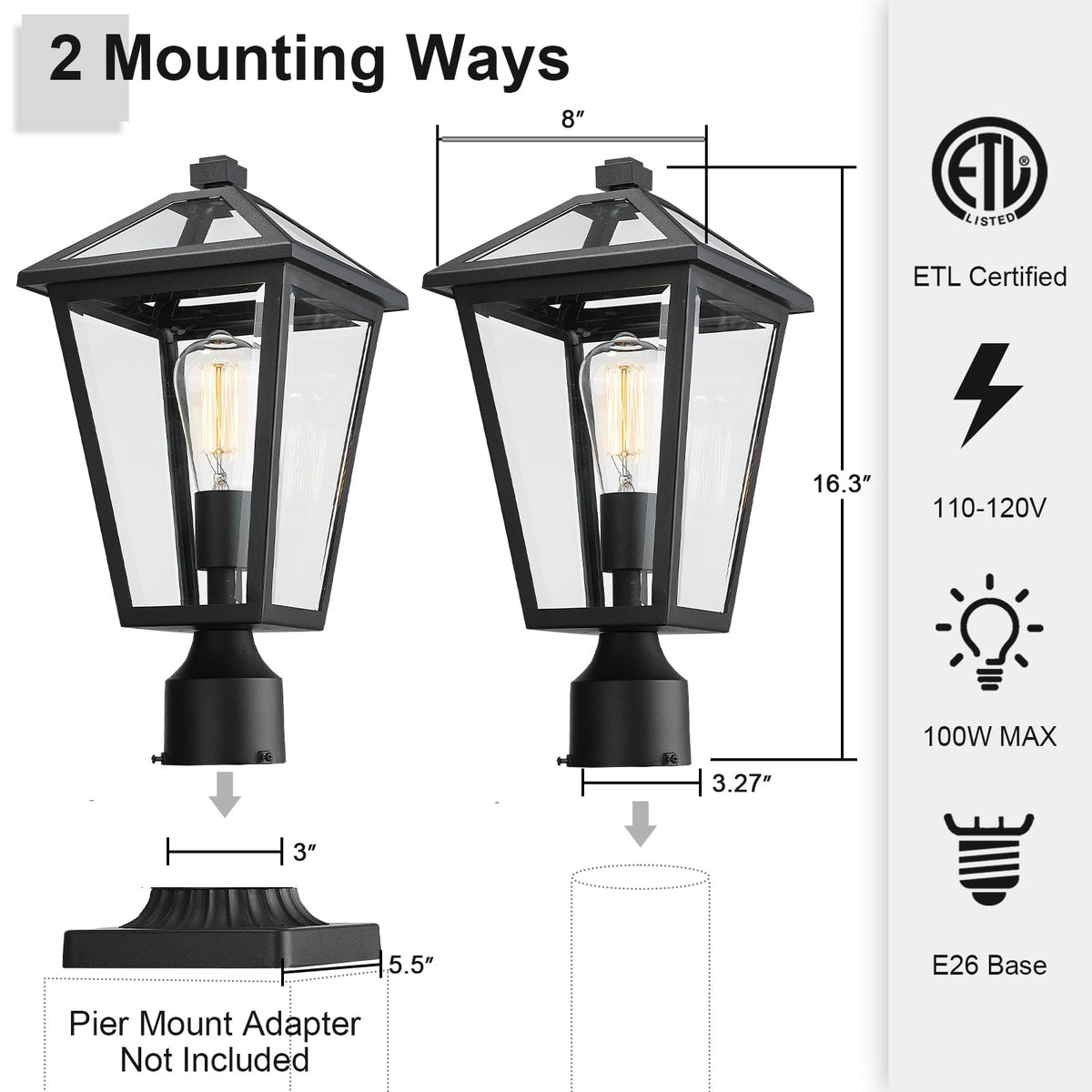 - **Easy Installation**: Designed for hassle-free assembly, the outdoor post light fits a standard 3" mounting base (not included) and can also be easily mounted on a 3" post or pole, making setup quick and straightforward.