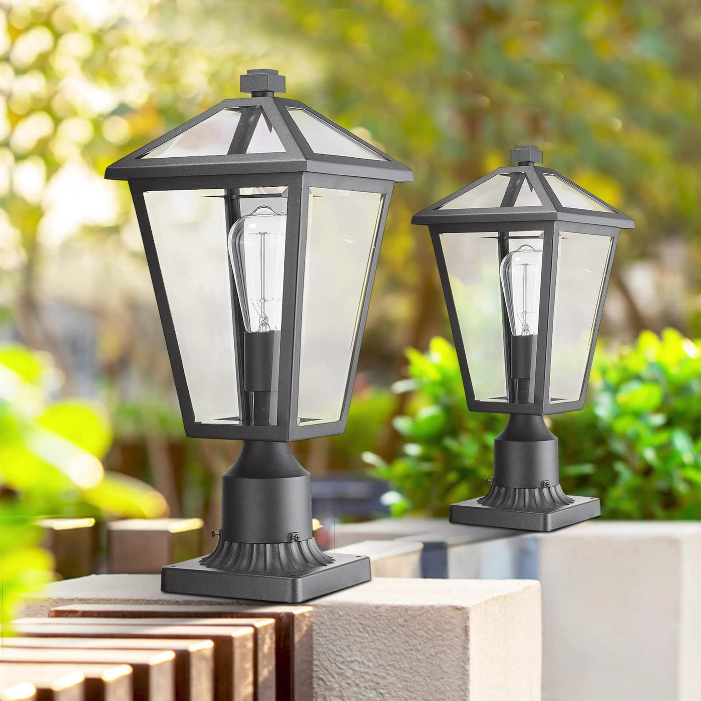 Luminzone Outdoor Post Light Fixture, Waterproof Aluminum Lamp For Walkway & Patio, Matte Black