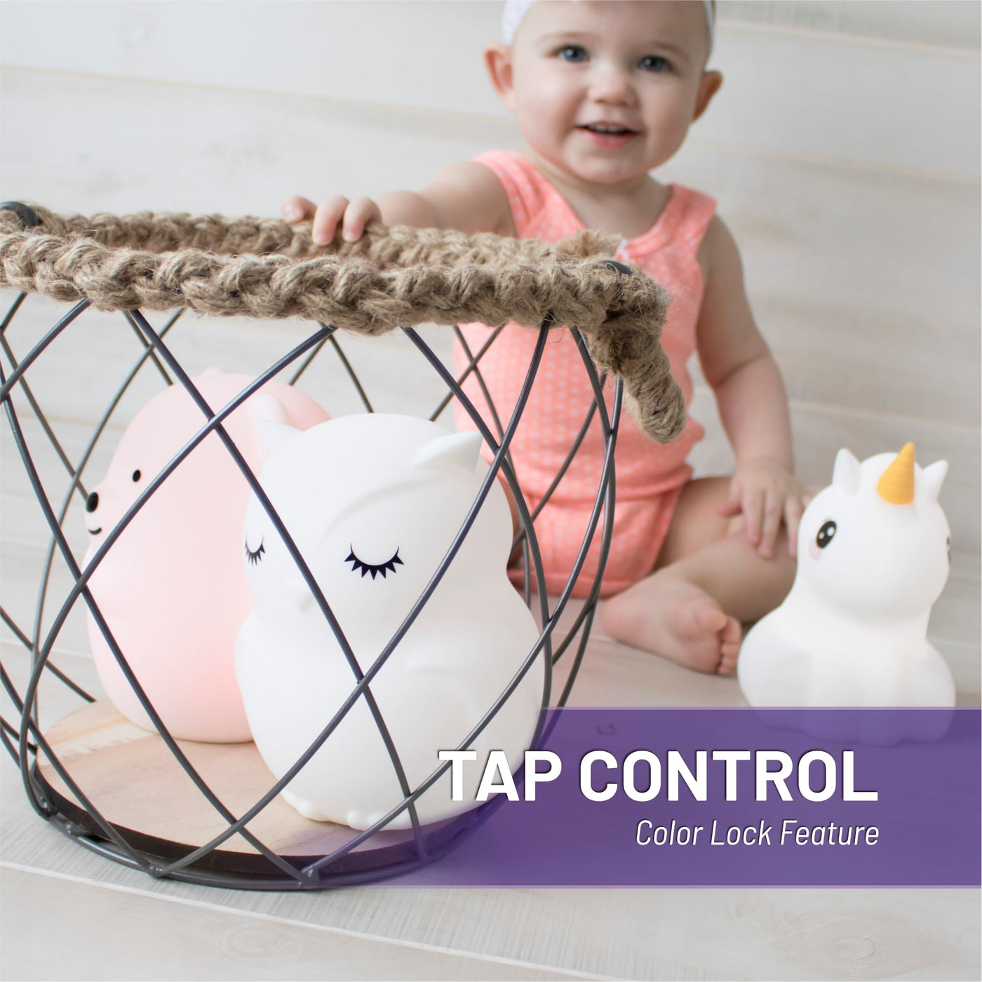 LumiPet are controlled by a tap, so kids can select their favorite color mode easily!. LumiPets comes in a whole wide range of super-cute designs to suit any personality and preference: Bear, Puppy, Cat, Bunny, Chick, Cloud, Dragon, Elephant, Fox, Hippo, Lion, Owl, Pig, Koala, Penguin, and Unicorn.