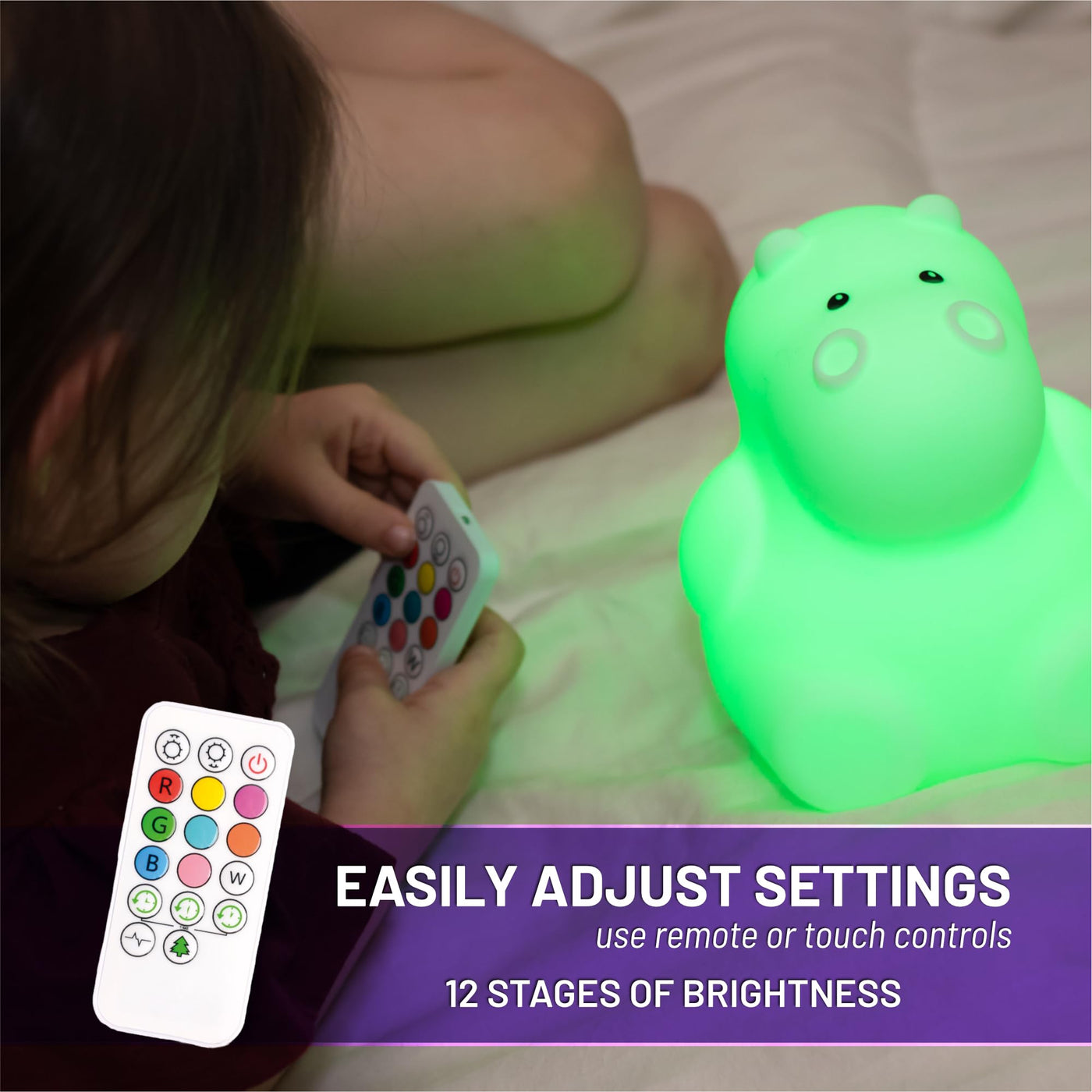 Lumipets Hippo, Kids Night Light, Silicone Nursery Light for Baby and Toddler, Squishy Night Light for Kids Room, Animal Night L