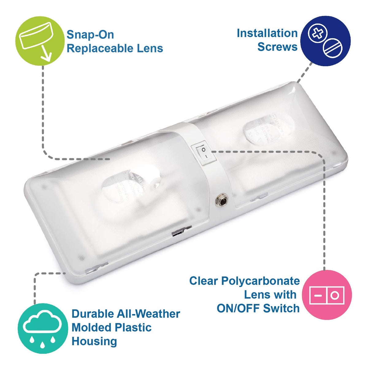 Lumitronics Rv Euro-Style Interior Ceiling Dome Light (Double With Jack)